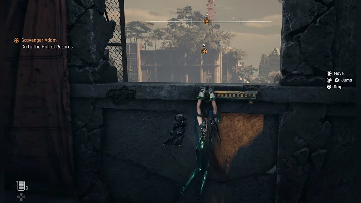Будьте осторожны, некоторые статуи начнут «оживать», когда вы приблизитесь к ним. Обязательно изучите тело, которое лежит слева. Таким образом вы получите пароль, который вам потребуется позже. Справа есть возможность спуститься вниз. Прыгайте на решётку и бегите вдоль парапета.