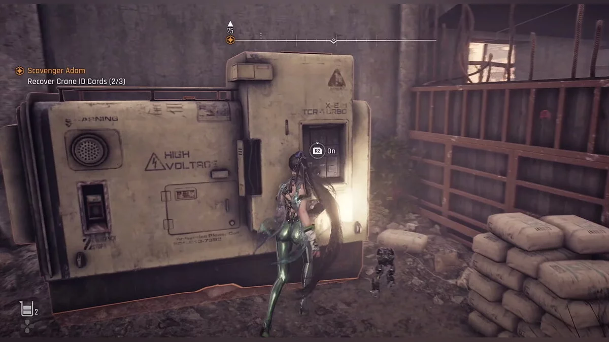 Прежде чем двигаться к основной цели, можете заглянуть на электростанцию. Если вы передвинете три небольших устройства на их платформы, которые расположены рядом, то получите доступ к ящику с ценными ресурсами.