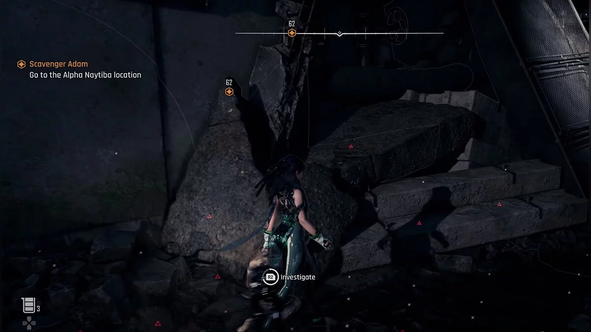 Двигайтесь вперёд по горной тропе. Вскоре вас будет ждать ещё одна вертикальная стенка. С её помощью вы сможете перебежать на другую сторону. Слева есть лагерь, который можно активировать. Рядом бродят инопланетяне с лёгкими гаубицами. Заблокировать или парировать их выстрелы не получится. Постарайтесь приблизиться к ним на расстояние удара и провести серию атак. В ближнем бою они практически беззащитны. Если же они успели выпустить снаряд — совершайте рывок, чтобы покинуть область поражения.