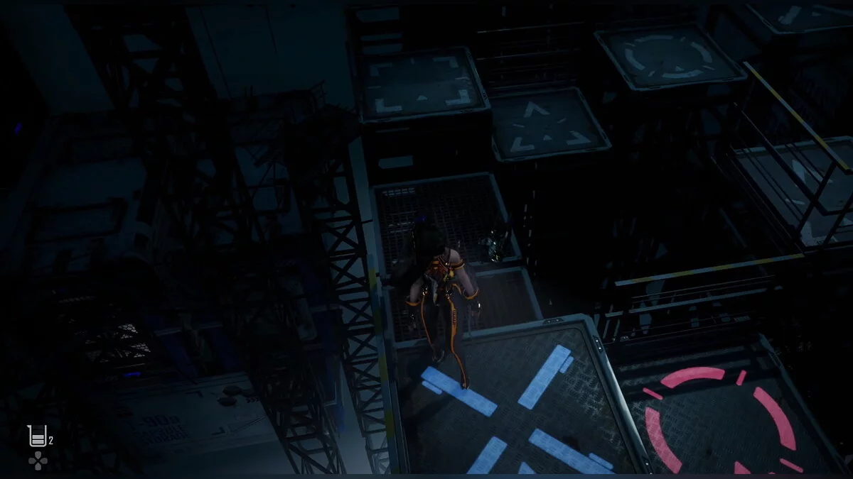 Слева есть уступы. Хватайтесь за ближайший из них и прыгайте от одного к другому, пока не доберётесь до платформы с контейнером. Оттуда прыгайте на гибрида и убивайте его в полёте. Добивайте остальных и открывайте ящик с ресурсами и аккумулятором. Код вы нашли раньше. На лифте возвращайтесь назад и открывайте дверь при помощи источника энергии.