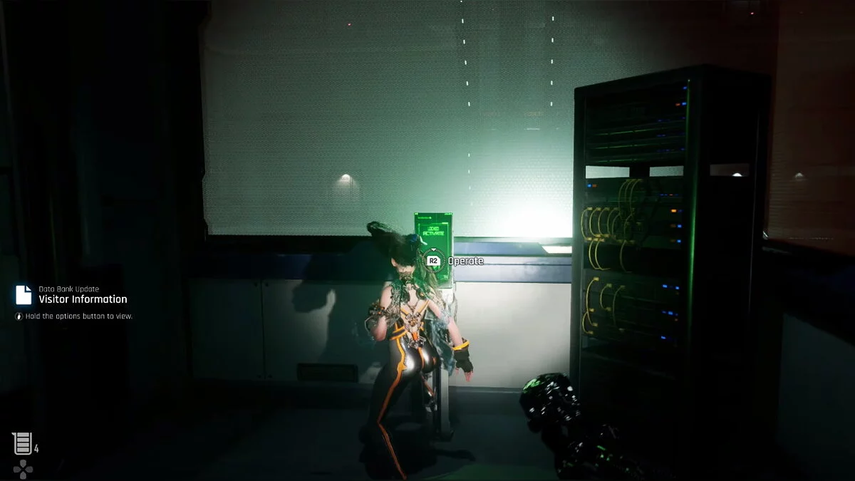 По ступенькам спускайтесь вниз и взаимодействуйте с терминалом.