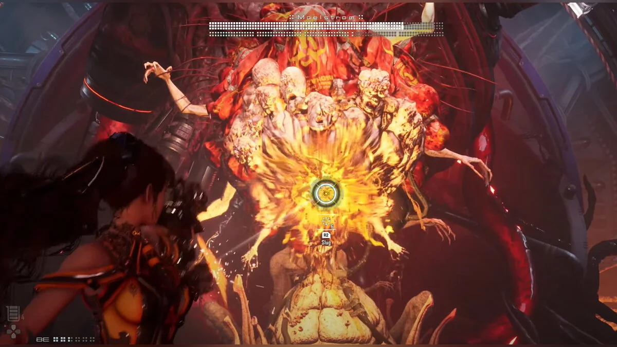 Ваша задача — поразить уязвимые точки на теле Мальстрема. После того, как ваша героиня нанесёт ему достаточно урона, вы увидите большой жёлтый сгусток по центру тела босса. Стреляйте по нему из электропушки или запускайте ракеты.