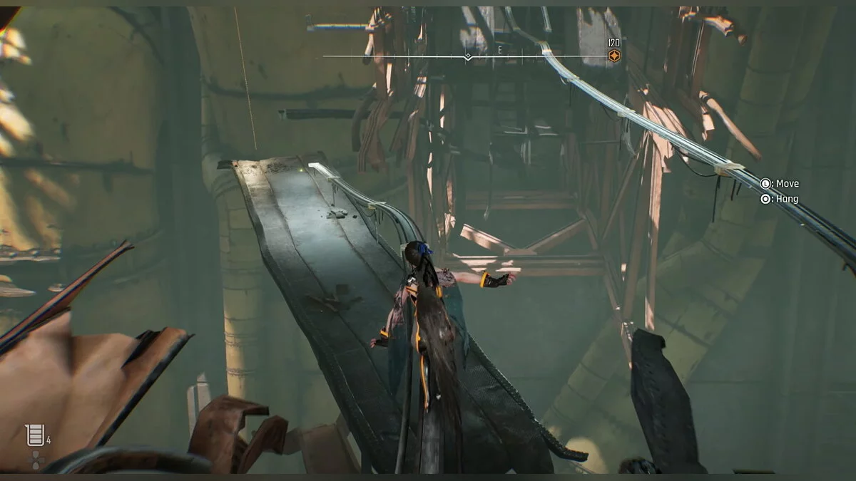 В вагоне вас ждёт QTE — нужно вовремя нажать «квадрат», а затем «крестик». Сама сцена почти покадрово копирует Uncharted 2. В конце надо будет пробежаться по крыше падающего вагона и прыгнуть. По рельсе доберитесь до верёвке, с её помощью подниметесь выше и прыгните вперёд.