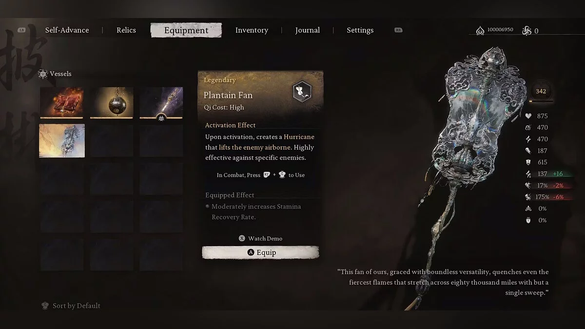 Когда вы разблокируете артефакт, вы сможете использовать его, нажав RT или R2 и левый стик. До этого вам придется выбрать артефакт в меню. Для этого откройте свой инвентарь, а затем проверьте слот рядом с духами и вашим снаряжением. Это ваш слот для артефакта. Когда он выбран, наращивайте свой ресурс Ци как обычно: либо отдыхая, либо сражаясь с врагами и накапливая его. Затем вы можете активировать артефакт.
