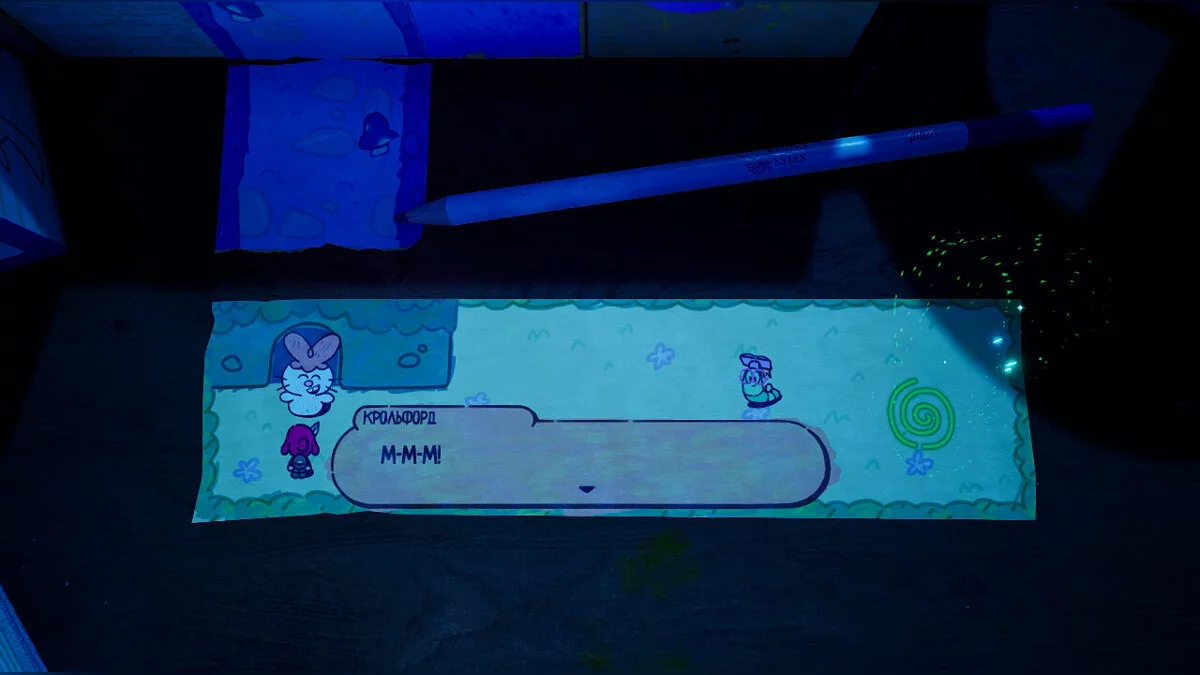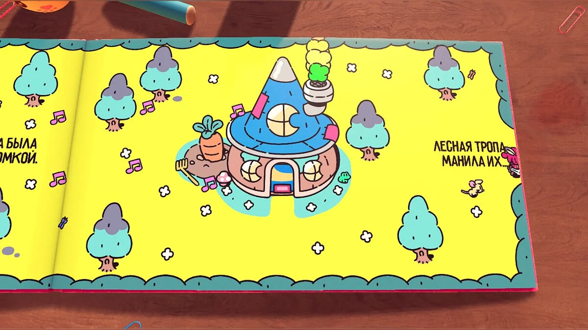 Вона обіцяє допомогти нам, а також навчає можливості переміщатися за допомогою порталів між реальними і книжковими світами. Наприклад, ми переносимося до кролика, повертаємося за найближчою морквою і віддаємо її Крольфорду.