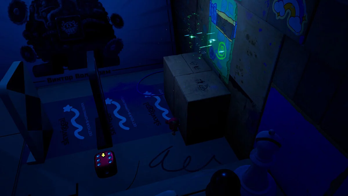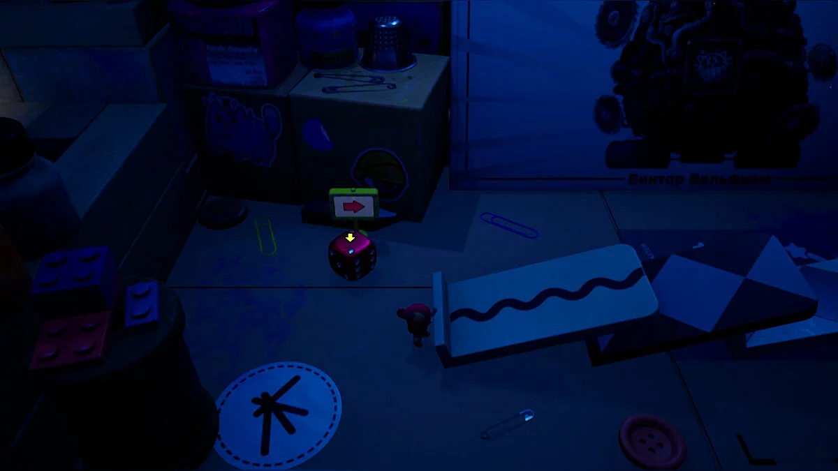 Літера розповідає нам про якийсь артефакт, який допоможе Очерку повернутися додому. Направляємося вниз, помічаємо доміно, а трохи далі — і сам кубик. Однак до нього ще потрібно дістатися.