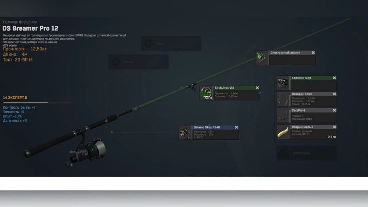 Першим ділом на локації Дукор накопичте на три комплекти 8кг фідерів, до них збірка котушка, волосінь, повідці, годівниці або грузила (все це продається в Білорусі). Слідкуйте, щоб повідок на снасті був тоньше волосіні і слабкіше вудки. У разі чого краще втратити повідок, ніж ремонтувати всю снасть.