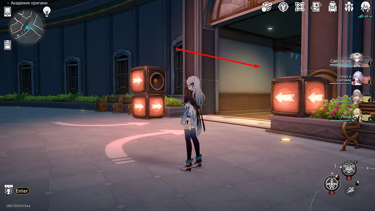 Від попередньої скрині пройдіть до сусіднього входу, але не заходьте в коридори, а поверніть праворуч — близько двох банерів та стрілочки стоїть скарбниця №13.