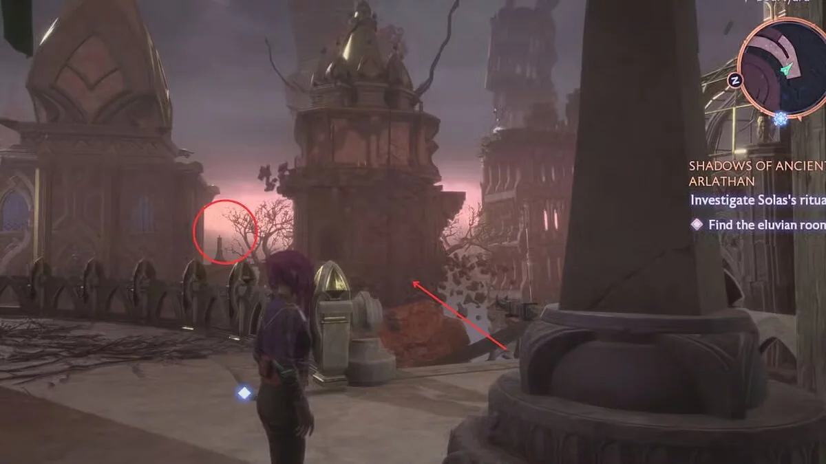 Добравшись до цієї локації, слідуйте за маркером, який вкаже вам шлях через сходи. Спустіться до воріт та прийміть квест, щоб почати проходження головоломки.
