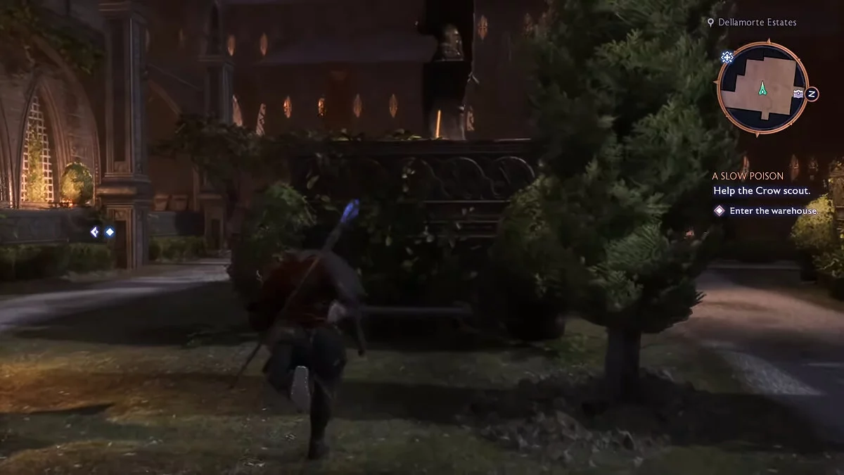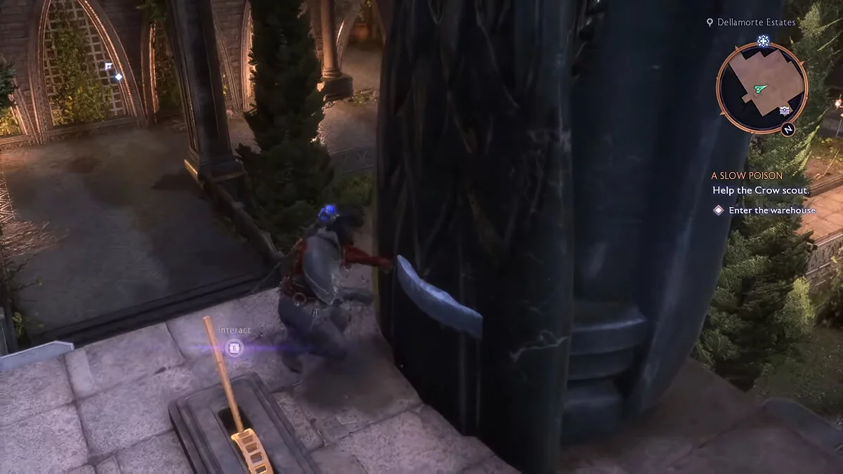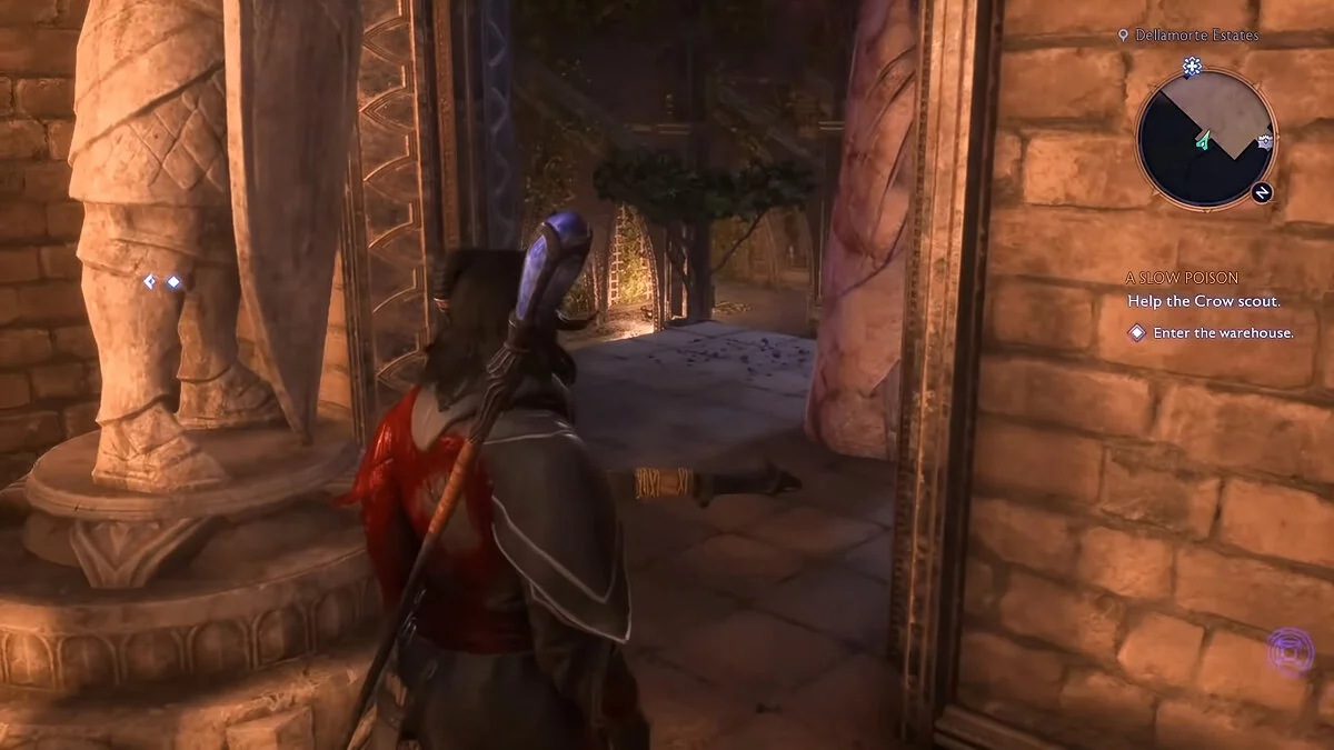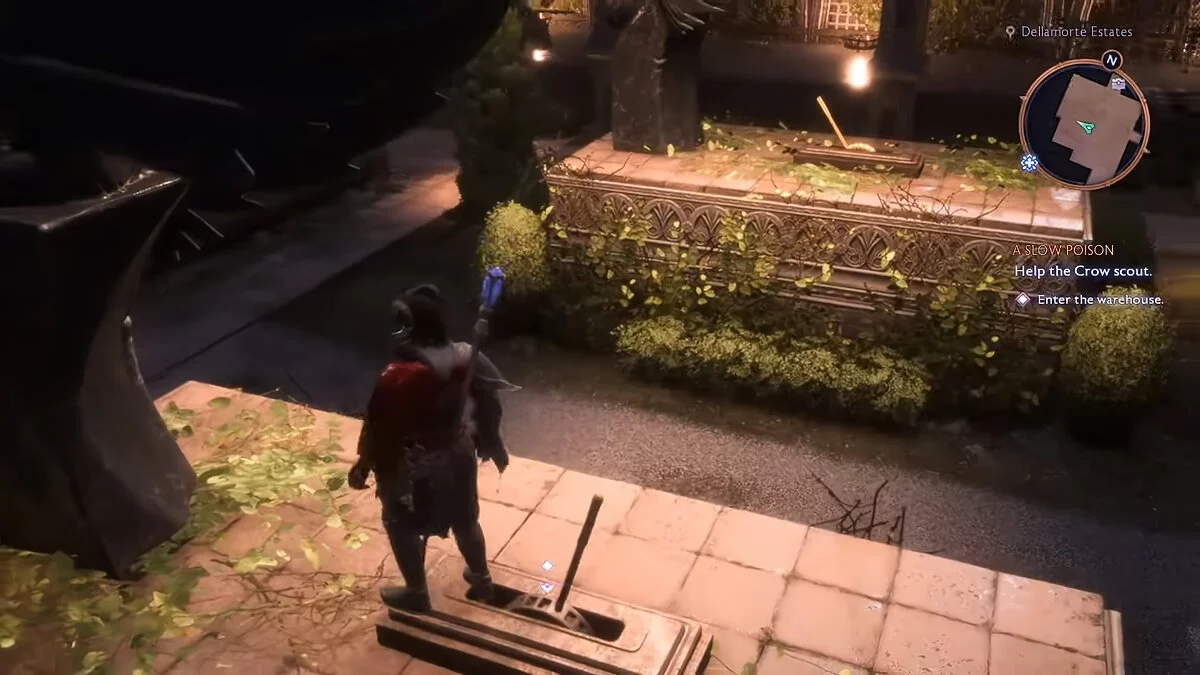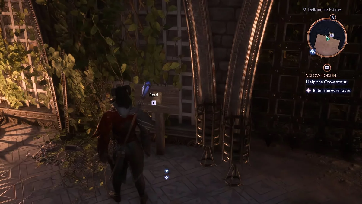 Після завершення прологу і розмови з вашими супутниками вам слід покинути головну будівлю бібліотеки і вийти у двір. Прямуйте на північ карти, обходячи зліва до будівлі з дверима, покритими виноградними лозами, відомої як «Майстерня».