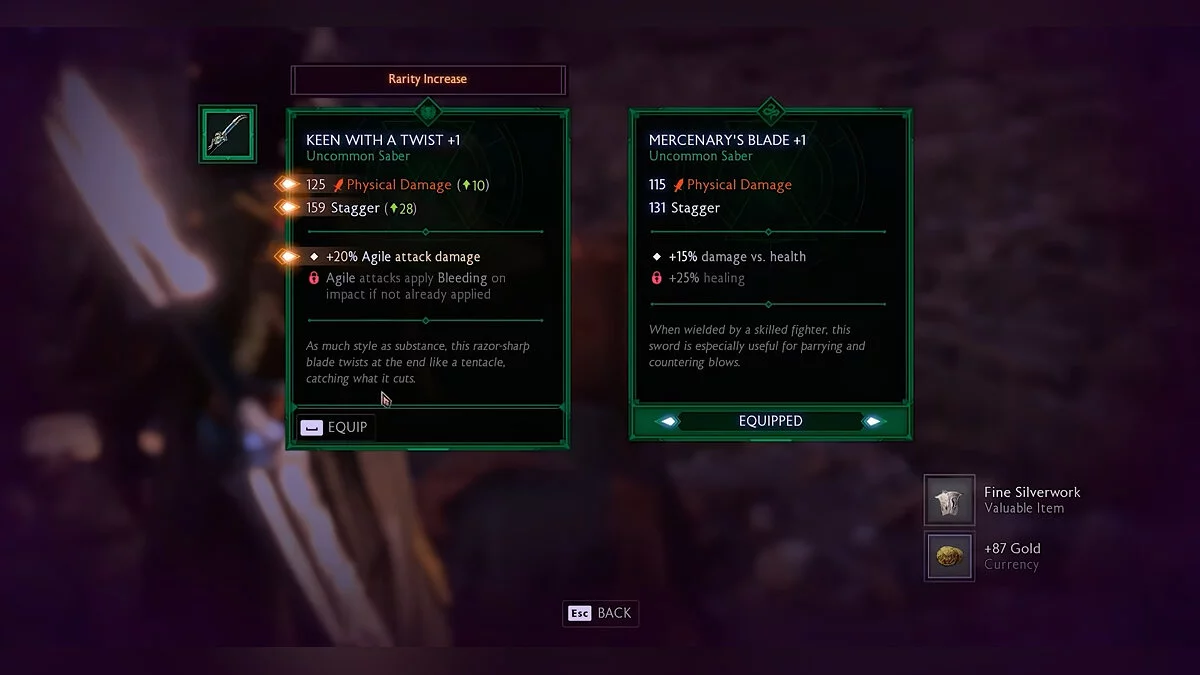 Ви можете взяти дублікати Brawler's Decorated Leathers і Weisshaupt's Wall, щоб підвищити їх рідкість. Крім того, в більшій розкішній скрині ви знайдете унікальний довгий меч Meredith's Legacy: