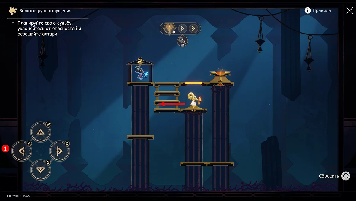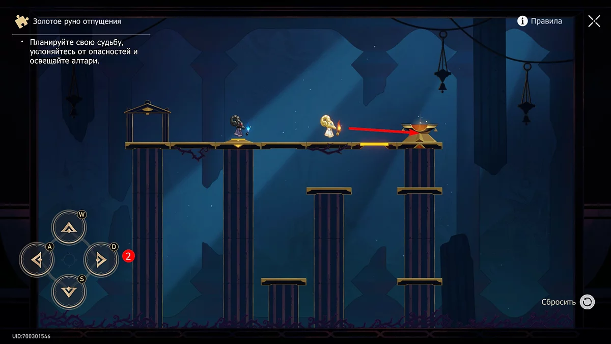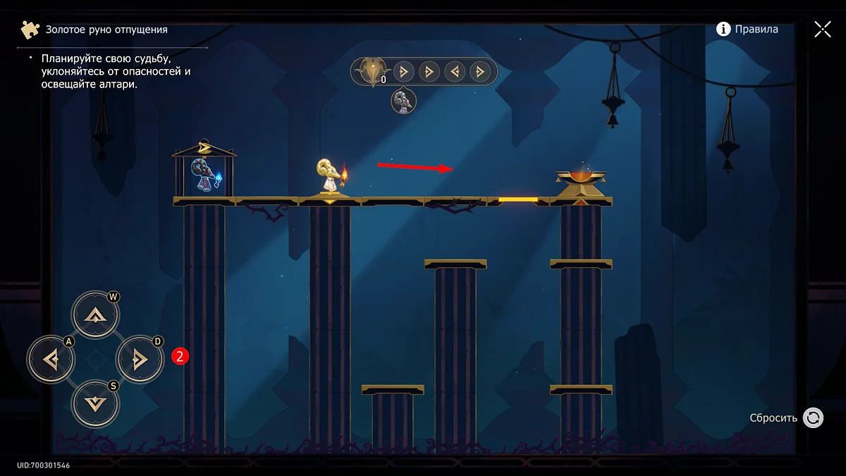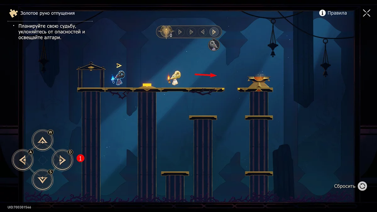 Якщо ви пройдете буквально пару кроків в тому ж напрямку, то побачите головоломку з Золотим руно відпущення. Взаємодійте з баранячою головою і виконайте кроки, вказані на скріншотах вище.