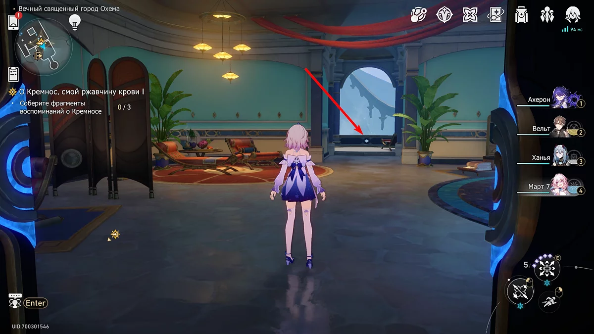 Телепортуйтеся до Мармурового палацу і скористайтеся телепортом у вигляді пташиних крил за просторовим якорем, щоб перебратися в іншу частину Охеми. Там ви зможете зібрати ще кілька скринь.