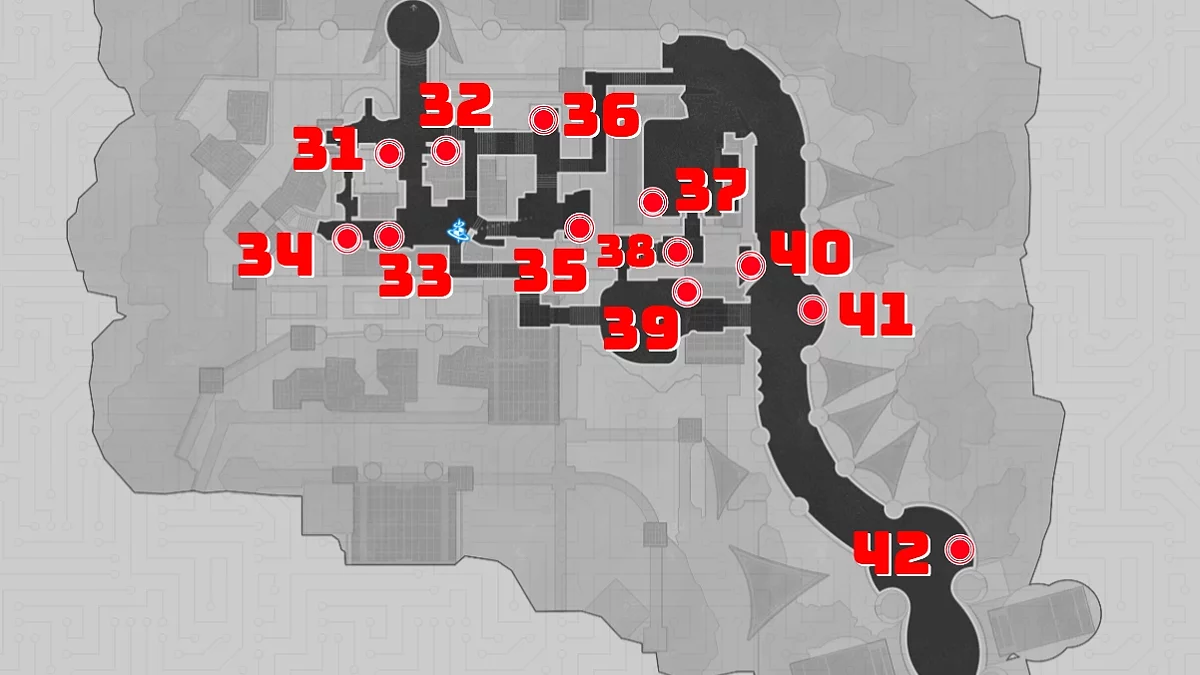 Чотири скрині, що залишилися, можна відшукати на другому поверсі південно-західної частини Охеми. Потрапити туди можна зі сходів біля скрині №31.