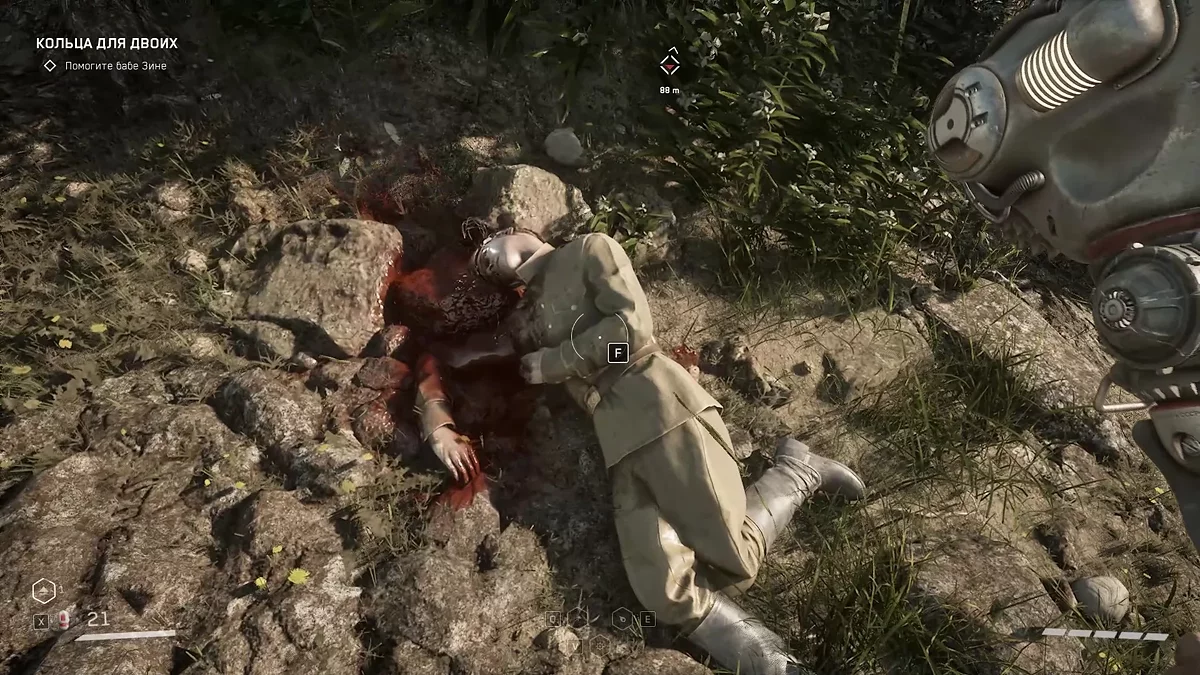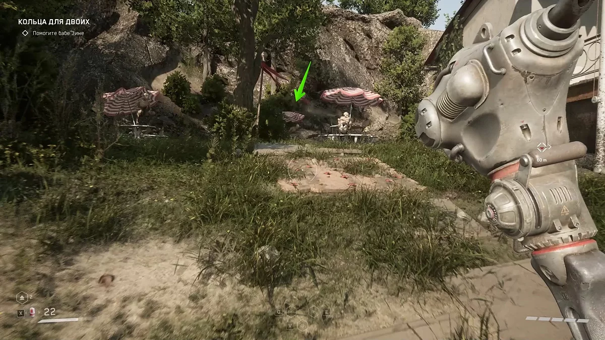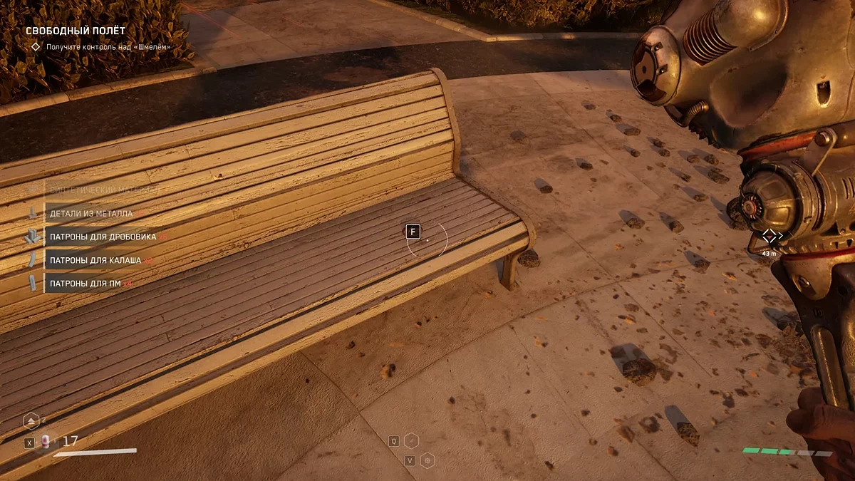 У наступній зоні також розберіться з кількома Вовчиками і огляньте місцевість. Окрім двох скриньок з припасами, ви знайдете тут труп агронома і щебетар «Таскати каштани з вогню» на лавці неподалік.