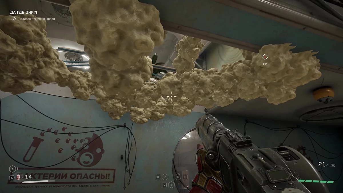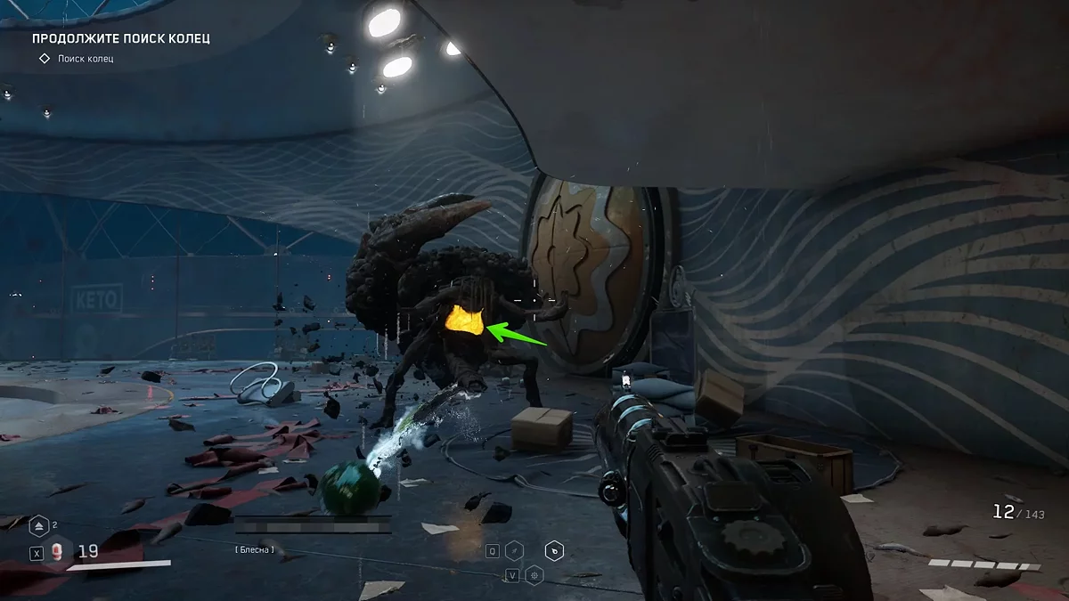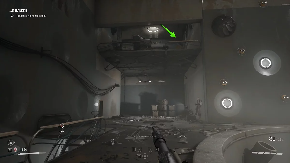 Рухайтеся по вентиляційній шахті за стрілками, однак? спустившись нижче, стрілка вказуватиме вправо — зверніть наліво, щоб потрапити в секретну кімнату з жовтим ящиком. Всередині буде поліпшення для дробовика: круговий ствол. Саме його ми рекомендуємо використовувати в подальшому, так як дробовик завдає величезної шкоди і відкидає дрібних ворогів на досить велику відстань.