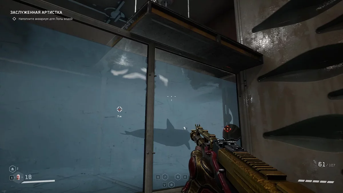 Коли доберетеся до кімнати з басейном, під водою заберіть вміст ящика, а також підніміться по сходах і знайдіть жовту скриню. Всередині покращений магазин для дробовика.
