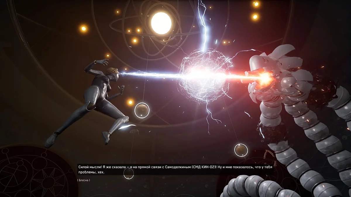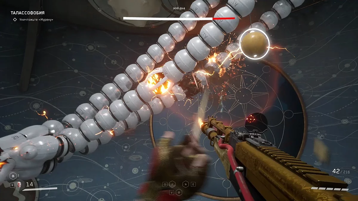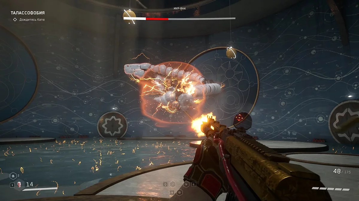 Цей супротивник нам здалося легшим, ніж усі попередні боси Atomic Heart. У якості атак у першій фазі битви Мурена використовує кілька різких випадів, від яких дуже просто ухилитися за допомогою батога та гачків на люстрах. Наносити шкоду ворогу — одне задоволення, адже на його корпусі з'являються оранжеві сфери, які потрібно вчасно розстрілювати. За одне попадання ворог втратить близько 15% від максимального здоров'я.