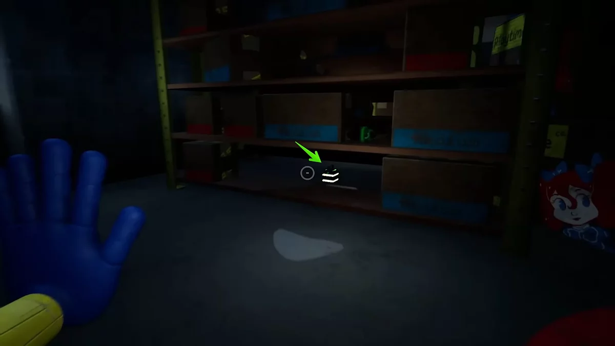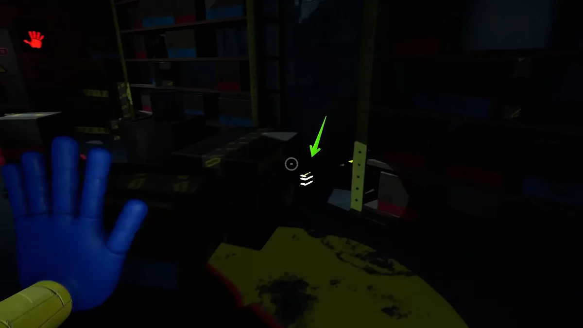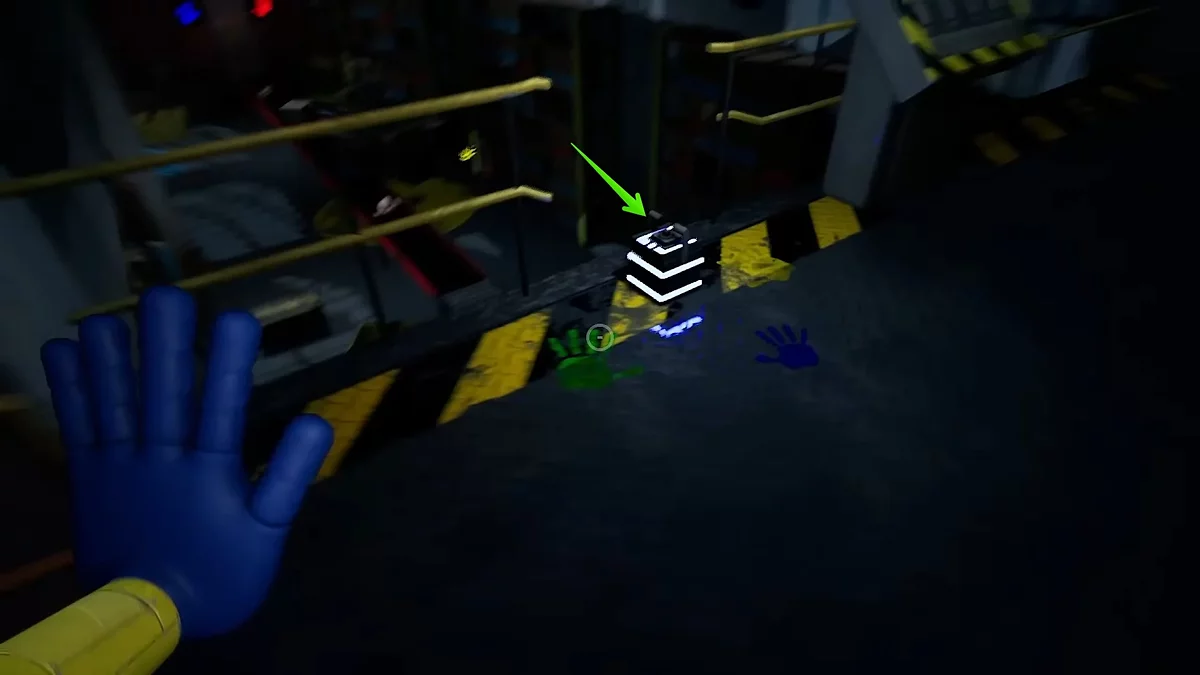 Пам'ятаєте зображення синьої руки в попередньому залі? Треба повернутися та взаємодіяти з ним, щоб відкрити черговий прохід. Зробивши це, доберіться до дверей з написом «05». Ви потрапите в кімнату з сміттєвими контейнерами та жовтим відеопрогравачем. Заберіться нагору та огляньте пульт управління. Сюди потрібно відшукати чотири елементи певних кольорів, перший якраз чекає зліва від нього.
