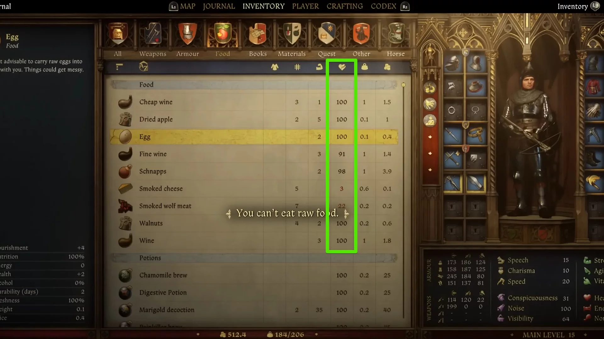 Кожен продукт у грі має показник свіжості, відображений у вигляді іконки сердечка з процентним значенням. Якщо цей значок пофарбований у червоний колір, така їжа напевно призведе до отруєння. І чим нижчий відсоток свіжості, тим серйознішим буде отруєння.