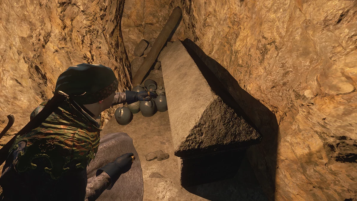 Опинившись всередині, знайдіть стіну з хрестом нагорі і почніть її розбирати. Пройшовши через прохід, обшукайте могилу, однак нічого цінного в ній не виявите.