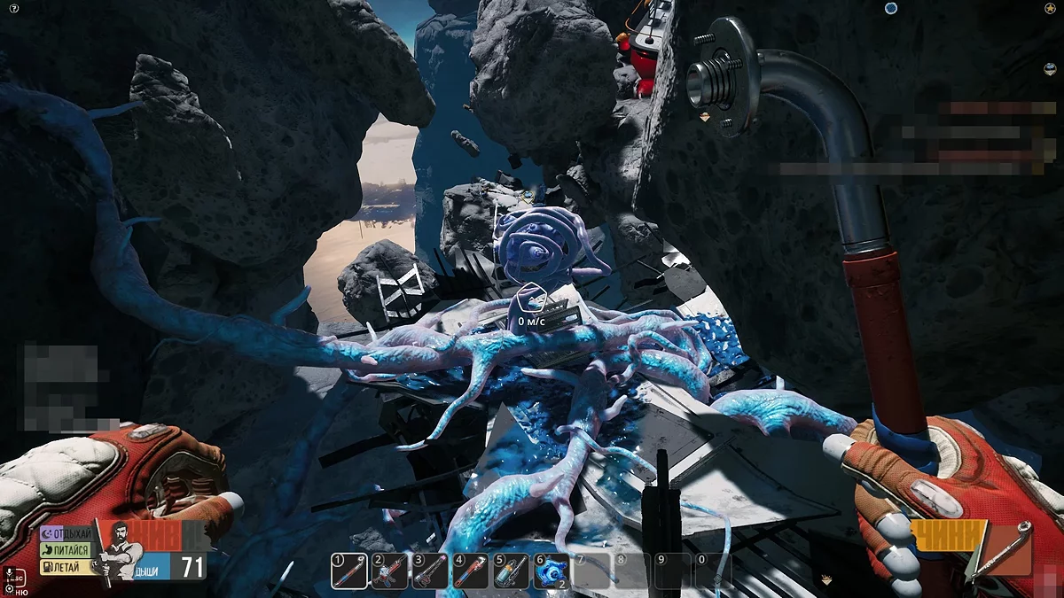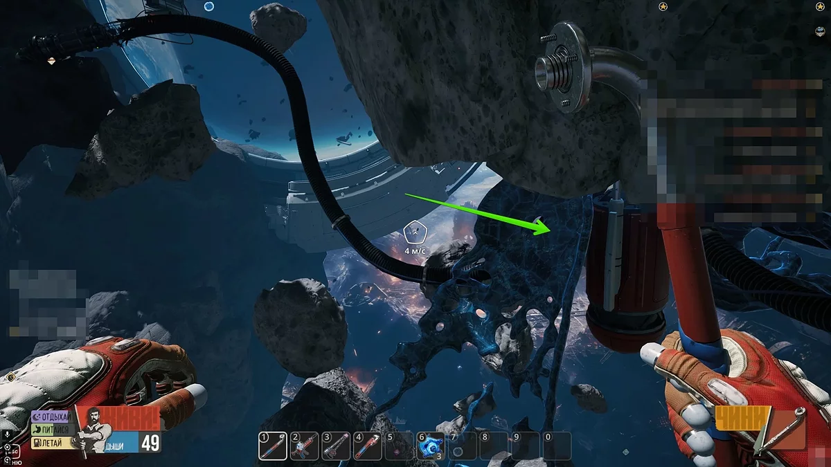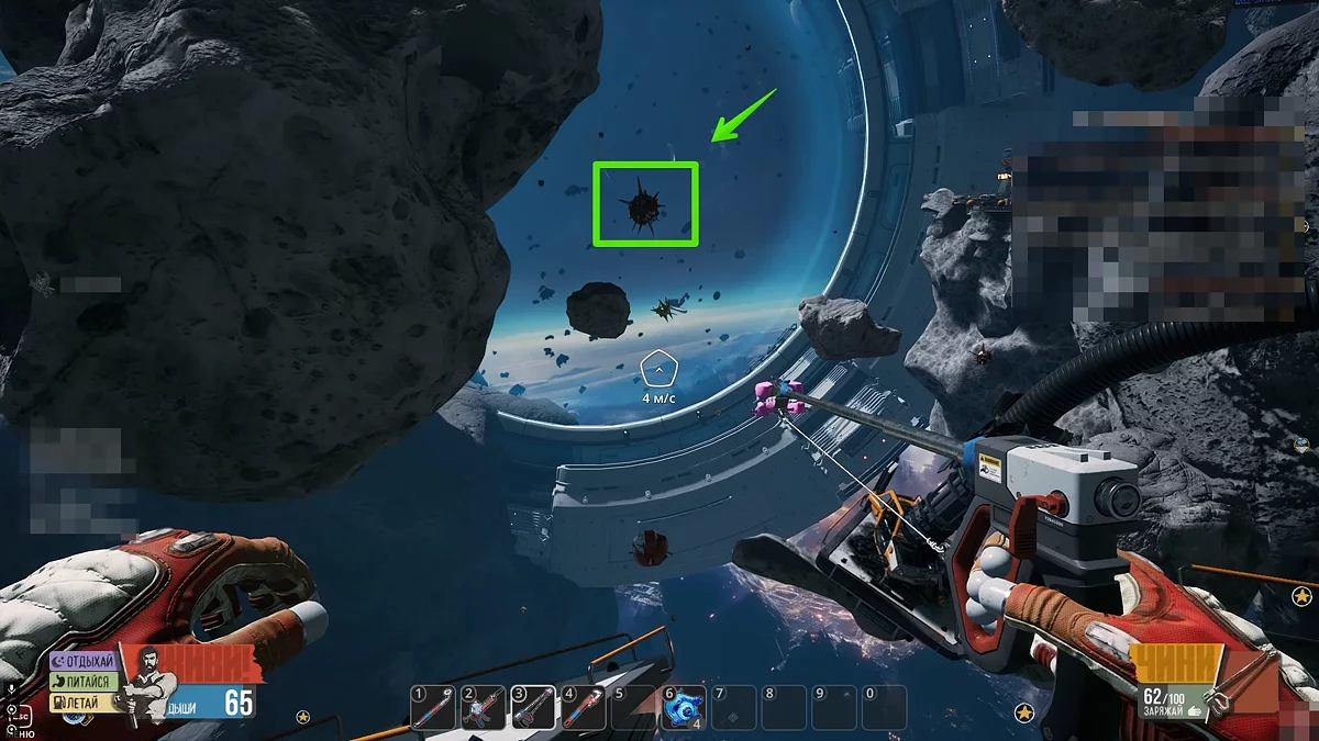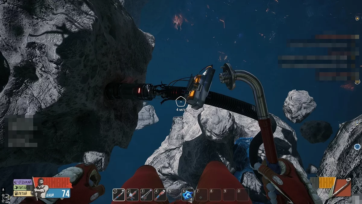Досліджуючи першу локацію, ви натрапите на незвичайні утворення на астероїдах — це гнізда червів. Підлетіть до гнізда, затисніть вказану на екрані клавішу і дочекайтеся, поки кисневий балон вашого героя наповниться. Незважаючи на те, що запаси повітря в гнізді можуть вичерпатися, ви зможете повернутися сюди пізніше, коли вони відновляться.
