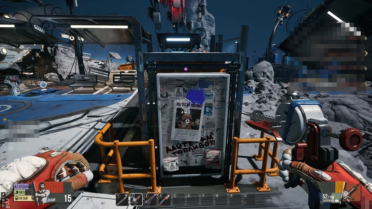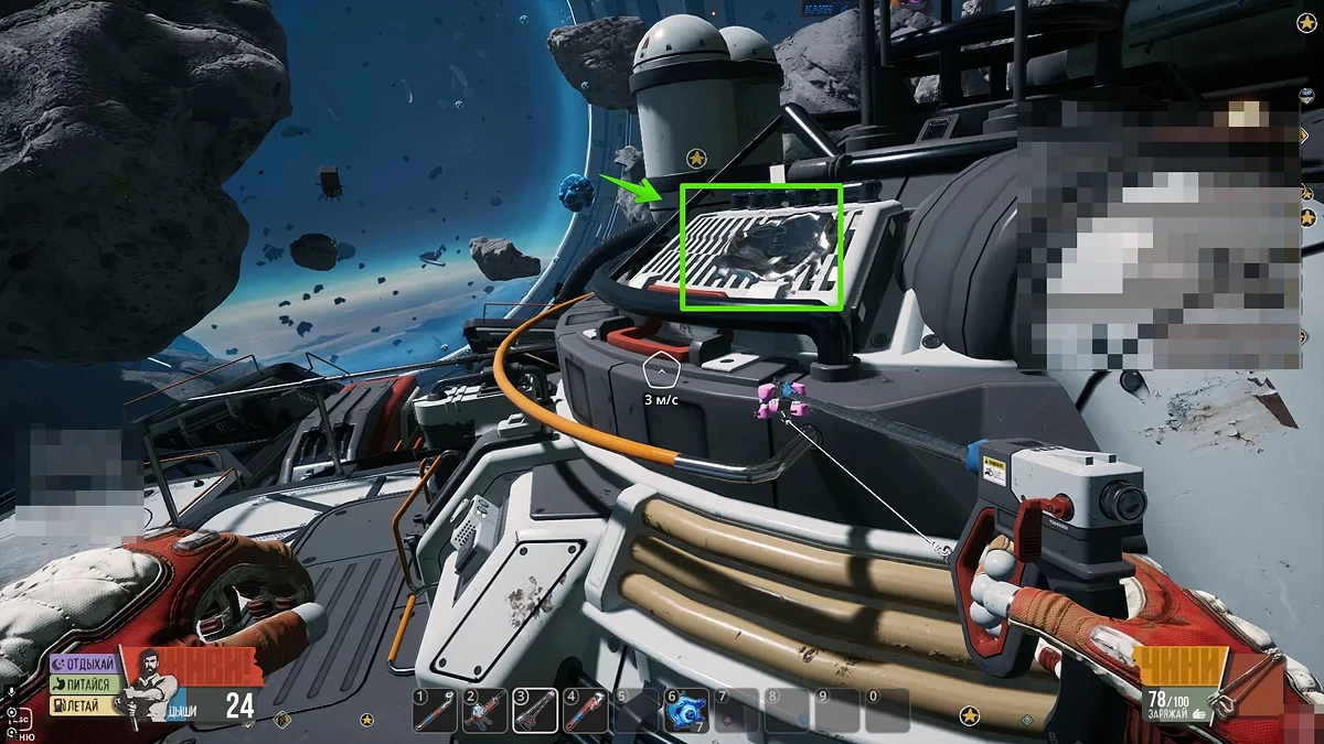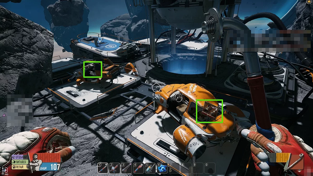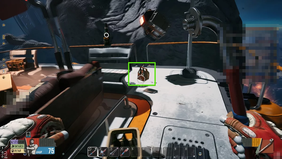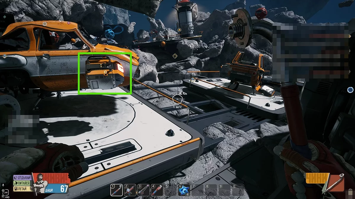 Виходьте в відкритий космос і огляньтеся. Шукайте невеликі уламки оранжевого кольору. Коли зберете їх, скрафтіть лом в інвентарі на окремій вкладці. За допомогою цього предмета ви зможете добувати метал та інші прості ресурси в необмеженій кількості. Окрім цього, не забудьте повернутися до Скафу і зірвати замок з телефонного апарата. Щоб отримати досягнення «Пранкер», ми прослухали автоответчик і вибрали останній варіант, натиснувши кнопку 3.