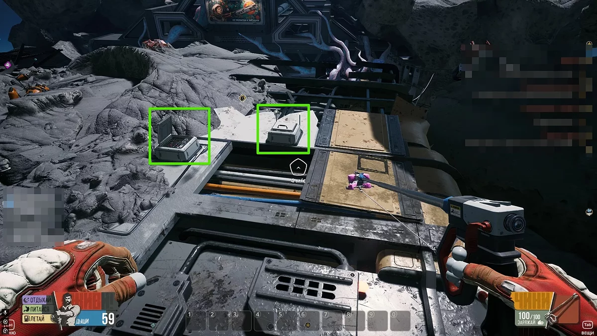 Один з необхідних на старті інструментів — велика батарея, яка знадобиться для подачі електрики на бурові установки, вежі і для відкриття деяких відсіків. Виявити таку на початку гри можна неподалік від вашого вагона: вийдіть у відкритий космос і летіть вправо, потім знову зверніть вправо і подивіться вниз. Тут є невелике багажне відділення, повністю зруйноване. Поряд з цим місцем парить батарея.