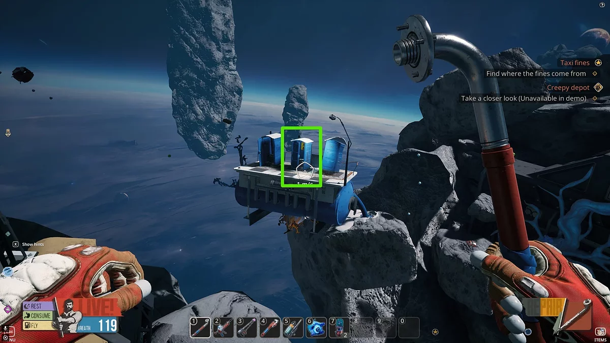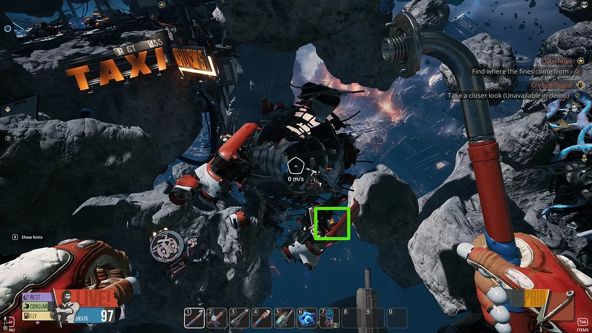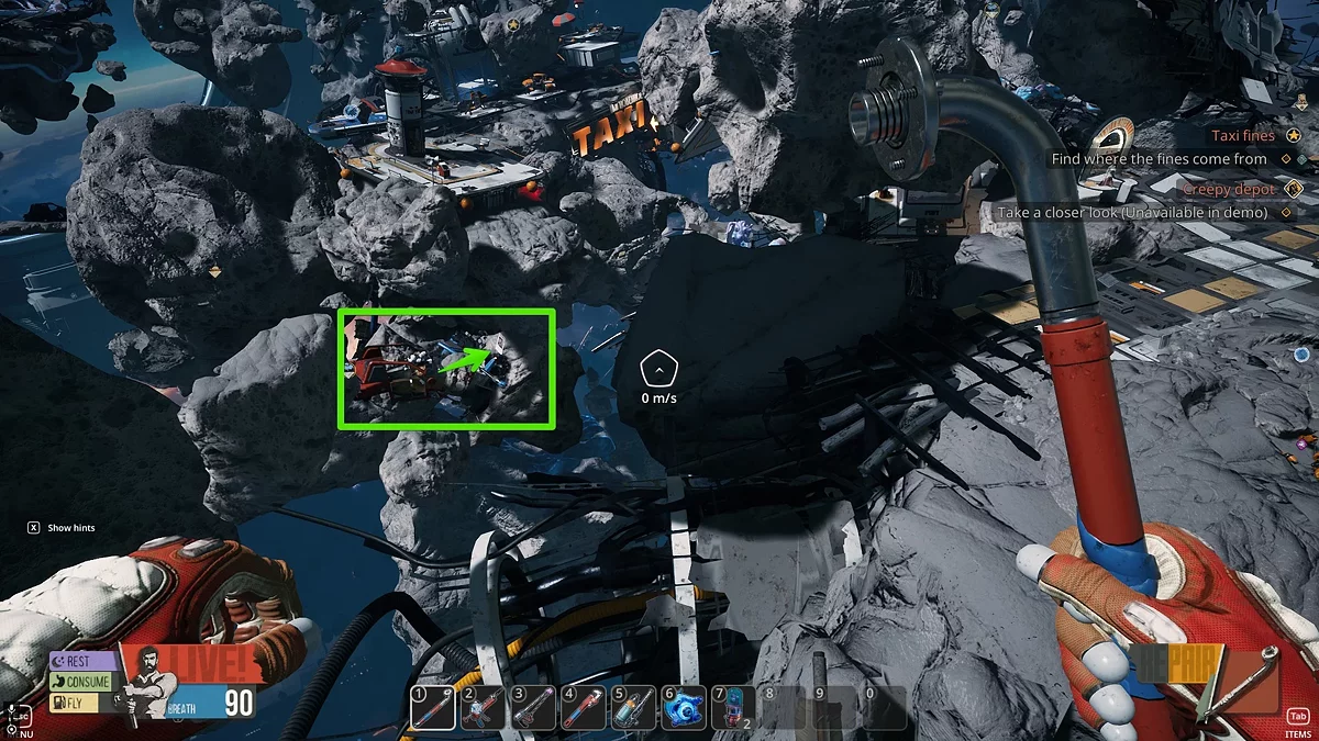 Але ви все ж можете виявити невелику кількість позаду астероїда з Таксі Чака (потрібно розламати кілька осколків титану), потім відремонтувати помпу та відкрити прохід у капсулу за завданням. В самій капсулі ви знайдете ще кілька одиниць титану, що допоможе завершити завдання. Нижче ми детально описали, як це зробити.