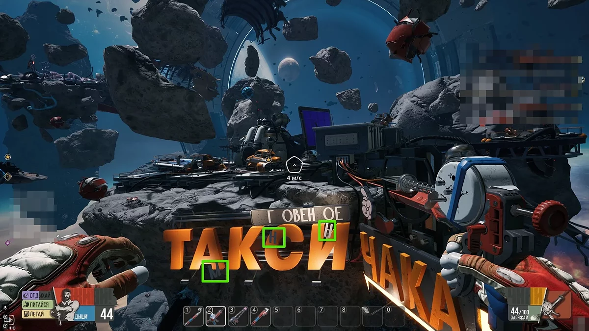 Трохи далі від кисневої станції Таксі Чака є уламок астероїда, на якому лежить згорілий автомобіль. Заберіть тут зелену бочку (23/48).