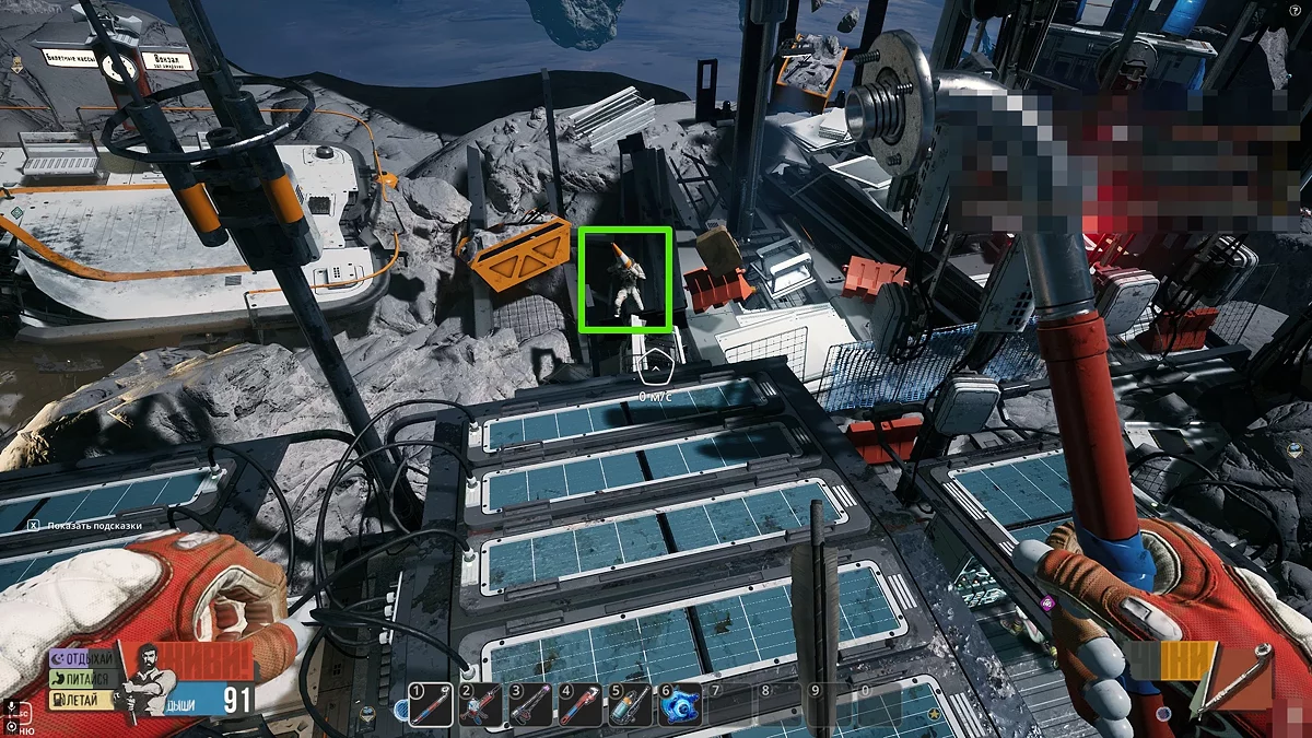 Сонячна панель справа несправна. Спершу позбудьтеся від металевого уламка в самій панелі за допомогою ломика, потім створіть в інвентарі шарнір і замініть його на новий. Нарешті, взаємодійте з консоллю, щоб розгорнути панель.