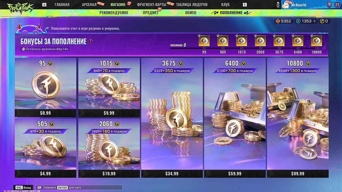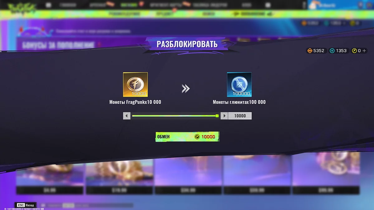 Для тих, хто хоче заощадити час і швидше досягти своїх цілей, у грі передбачено донат. Ви можете придбати Монети FragPunk за реальні гроші, а потім обміняти їх на золото і монети глюніта. Ці монети також можна заробити, виконуючи завдання в рамках великих івентів. Крім того, за Монети FragPunk можна купити ексклюзивні скіни, лутбокси і лансери, які зроблять ваш акаунт дуже цінним.
