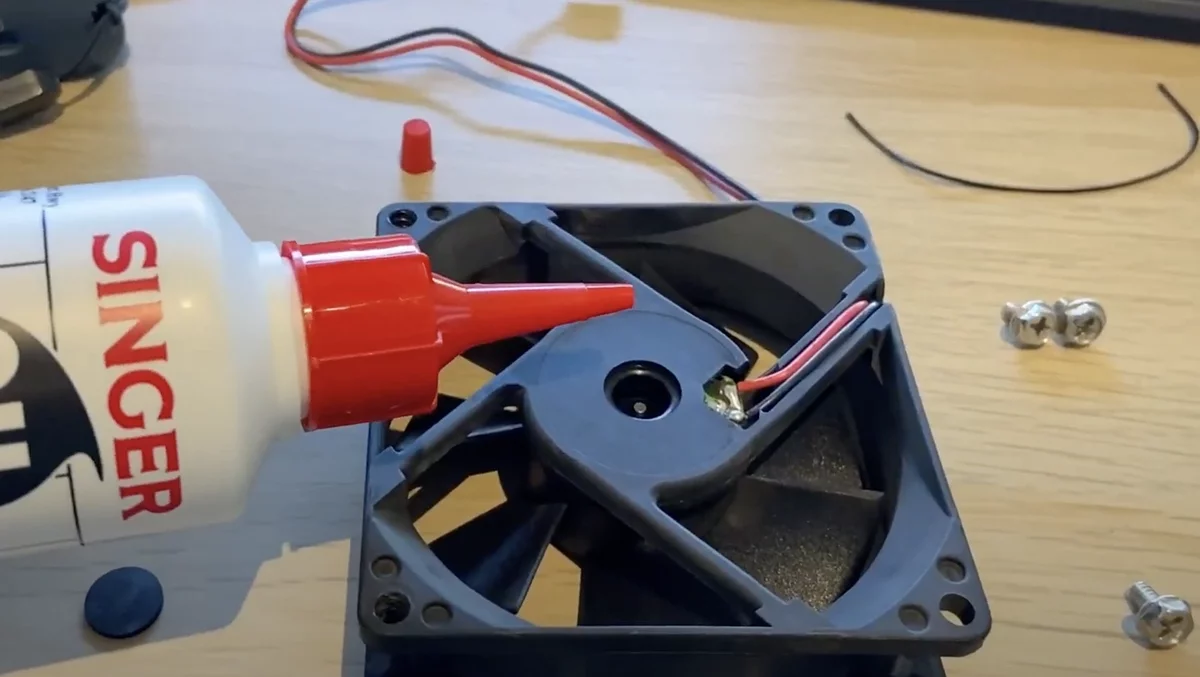 Якщо чистка не позбавляє від неприємного звуку, спробуйте змазати кулер, акуратно діставши його основну частину, з валом крильчатки. Вам підійде машинне масло або спеціальна універсальна змазка для господарських потреб.