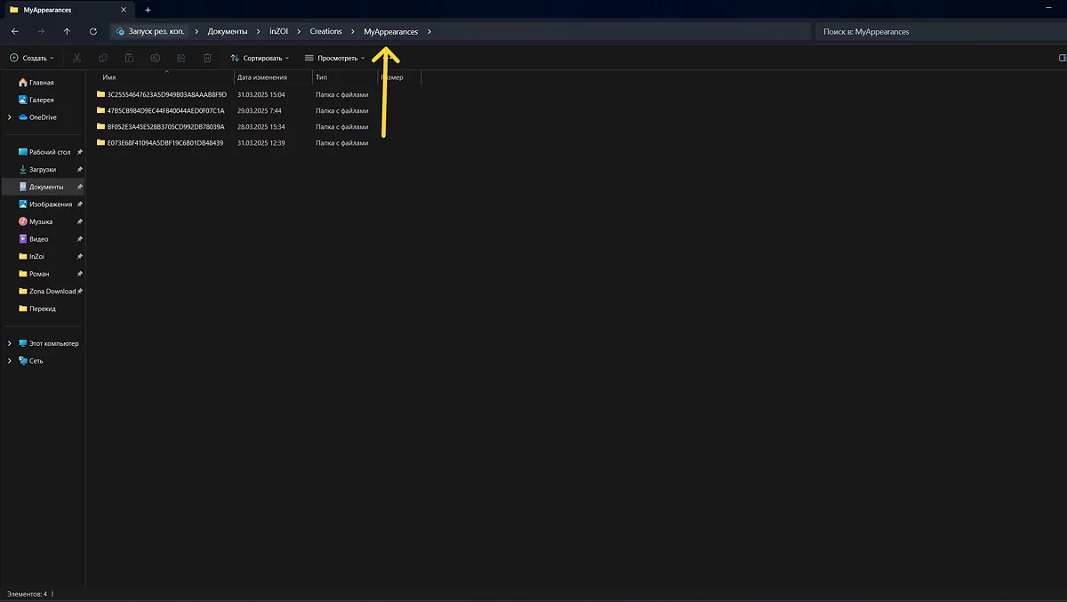- C:/Користувачі/Ім'я_користувача/Documents/inZOI/Creations/MyAppearances