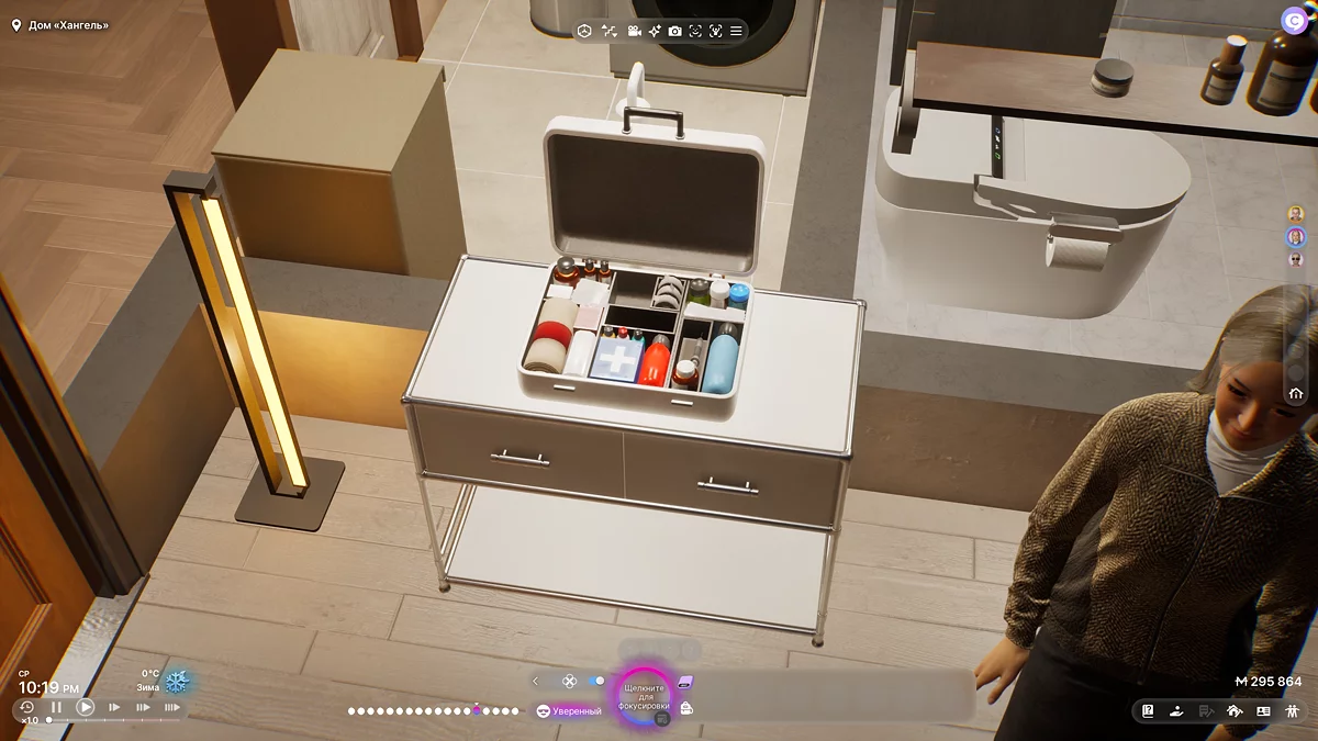 Найпростіший метод повернути підопічному здоров'я — скористатися аптечкою, яка продається в режимі проектування за 100 M. Щоб її знайти, достатньо ввести в пошуковому рядку «Аптечка » або відкрити будь-який розділ і в реквізиті знайти кейс: «Спальня» — «Реквізит» — «Аптечка». Після її розміщення в домі достатньо підвести захворілого до аптечки і вибрати опцію «Прийняти ліки».
