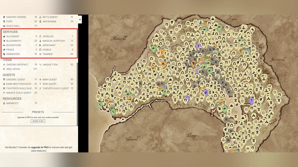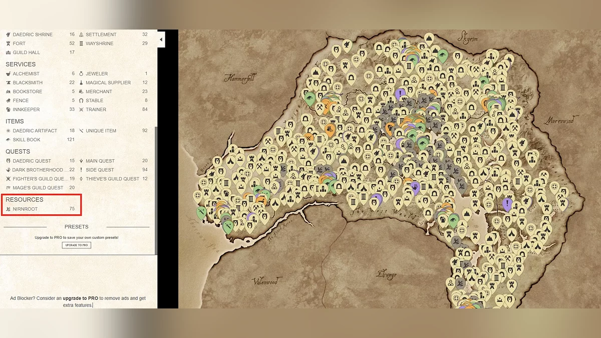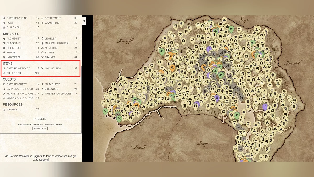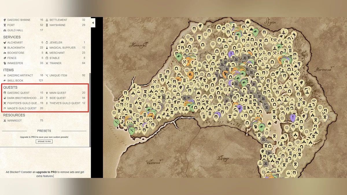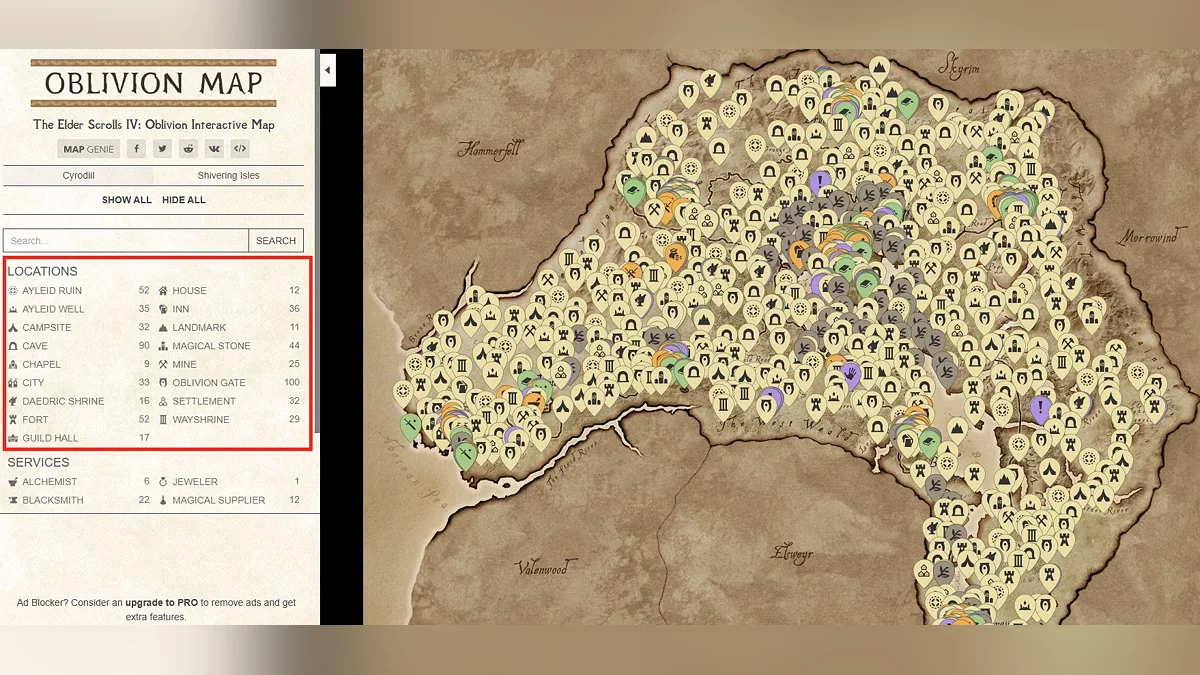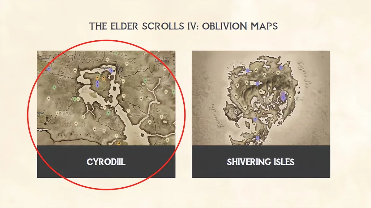 Інтерактивна карта Сиродила в The Elder Scrolls 4: Oblivion Remastered