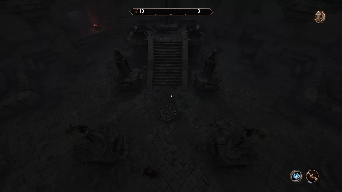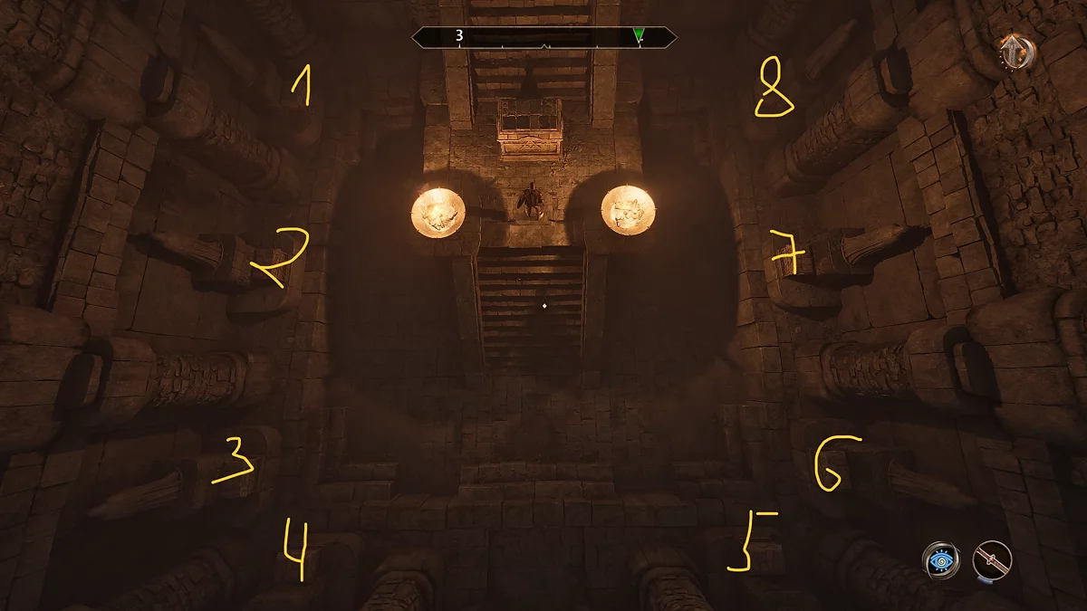 Потім ви потрапите в кімнату зі статуями. Фігури потрібно повернути таким чином, щоб вони всі дивилися на трикутник у центрі кімнати. В результаті відкриється прохід зліва від великого монумента.