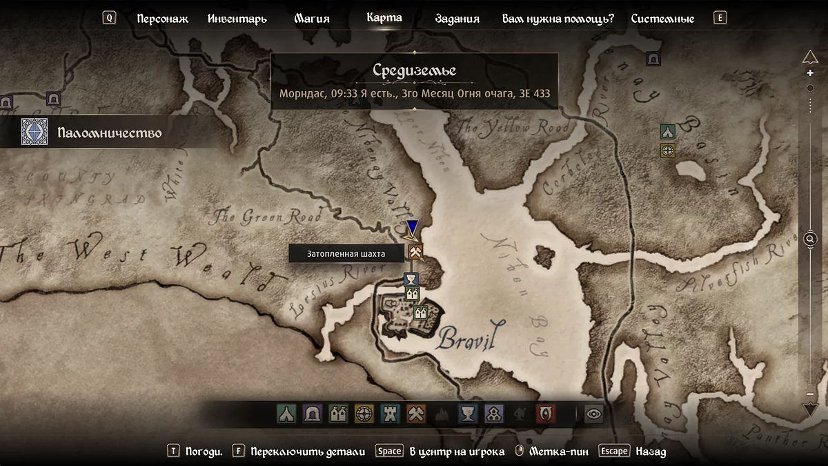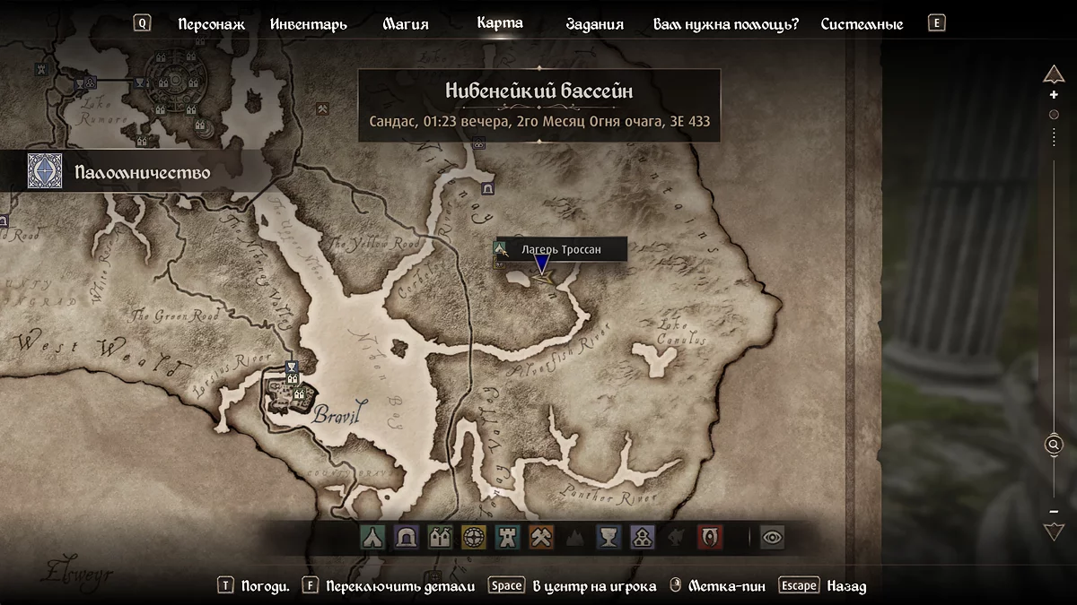 У видінні Пелінара ми дізнаємося, що почати пошук реліквій варто з загубленої святині на південь від столиці. Прямуйте до мосту, що перетинає річку Верхній Нібен (Niben River) поруч із фортом Алессія (Fort Alessia). Пірнайте у воду і знайдіть вхід до руїн.
