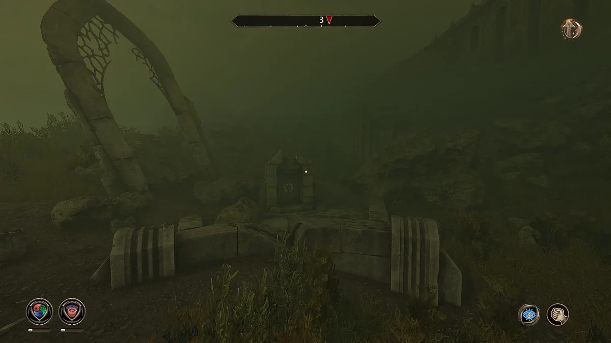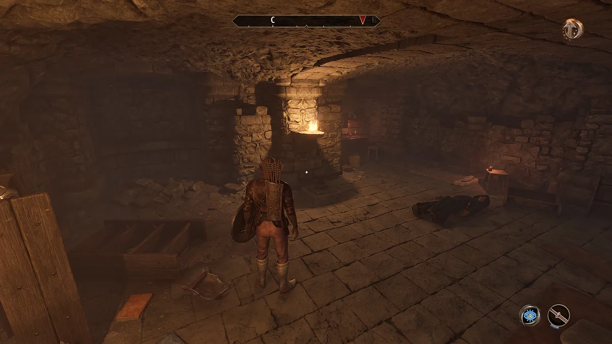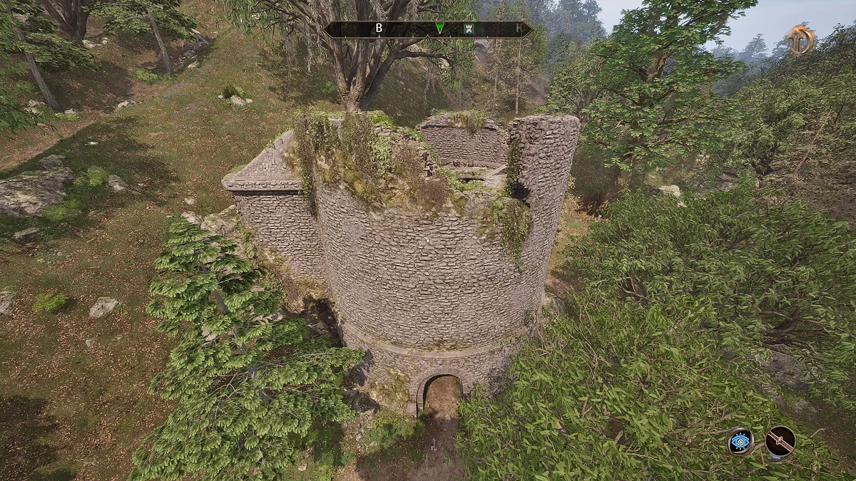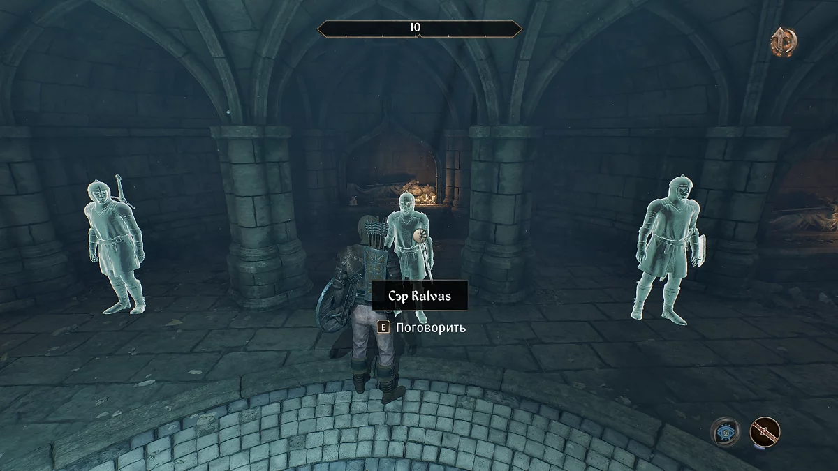 Знайдіть у руїнах скелет сера Аміеля (Sir Amiel Lannus) і заберіть усе, що є, з його останків. Відкрийте ключем калитку попереду і заберіться в тунель через тріщину в стіні. Потім пройдіть через катакомби, щоб потрапити до святині крестоносця. Заберіть з п'єдесталу шолом крестоносця (Helm of the Crusader), потім стрибайте вниз до скелета, відкрийте ворота і залиште руїни.