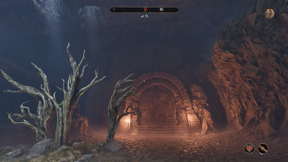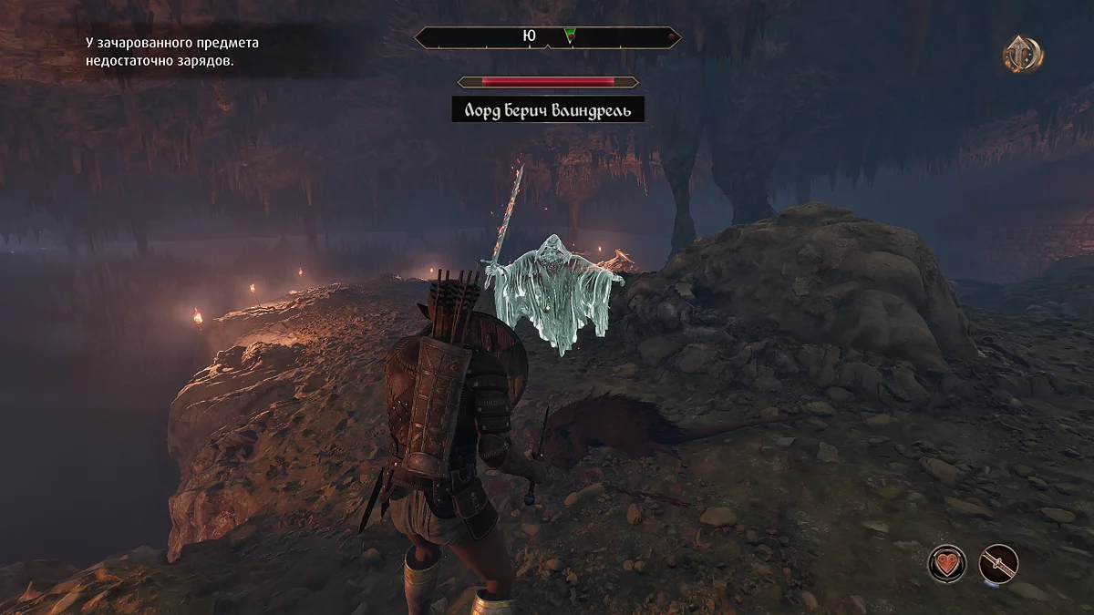 Ідіть вперед до великої дерев'яної двері. Зайдіть у наступне приміщення і зайдіть у дверний проєм зліва. Потім продовжте шлях, в кінці якого ви зустрінете привид лорда Берича (Lord Berich Vlindrel). Після перемоги підібрати з землі меч хрестоноса (Sword of the Crusader), однак через прокляття його використовувати не можна.