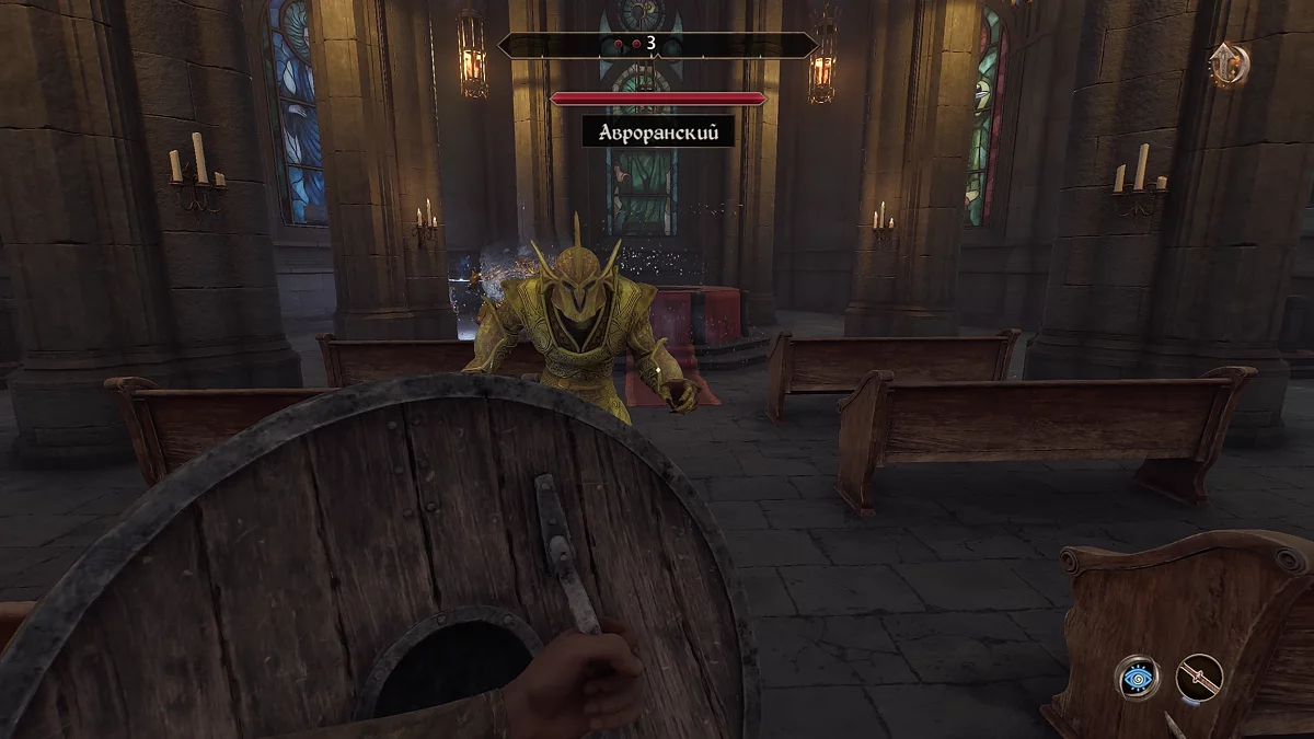 Покиньте підвал, потім підніміться нагору і допоможіть прихожанам відбитися від нападу авроріанців, служителів Меридії — принцеси даедра.
