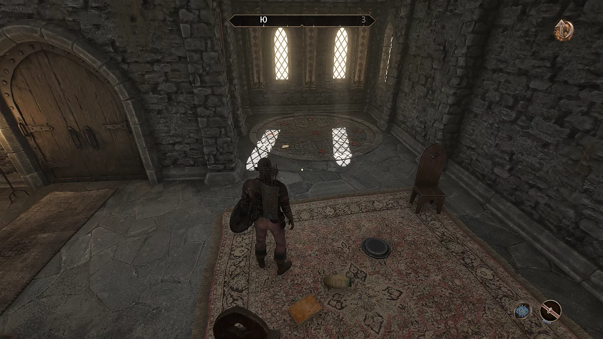 Увійдіть до дому і знайдіть зліва від дверей орнамент на підлозі у вигляді восьмикутної зірки. Взаємодійте з ним за допомогою кільця сера Аміеля (Sir Amiel's Ring) і відкриється прохід у підвал.