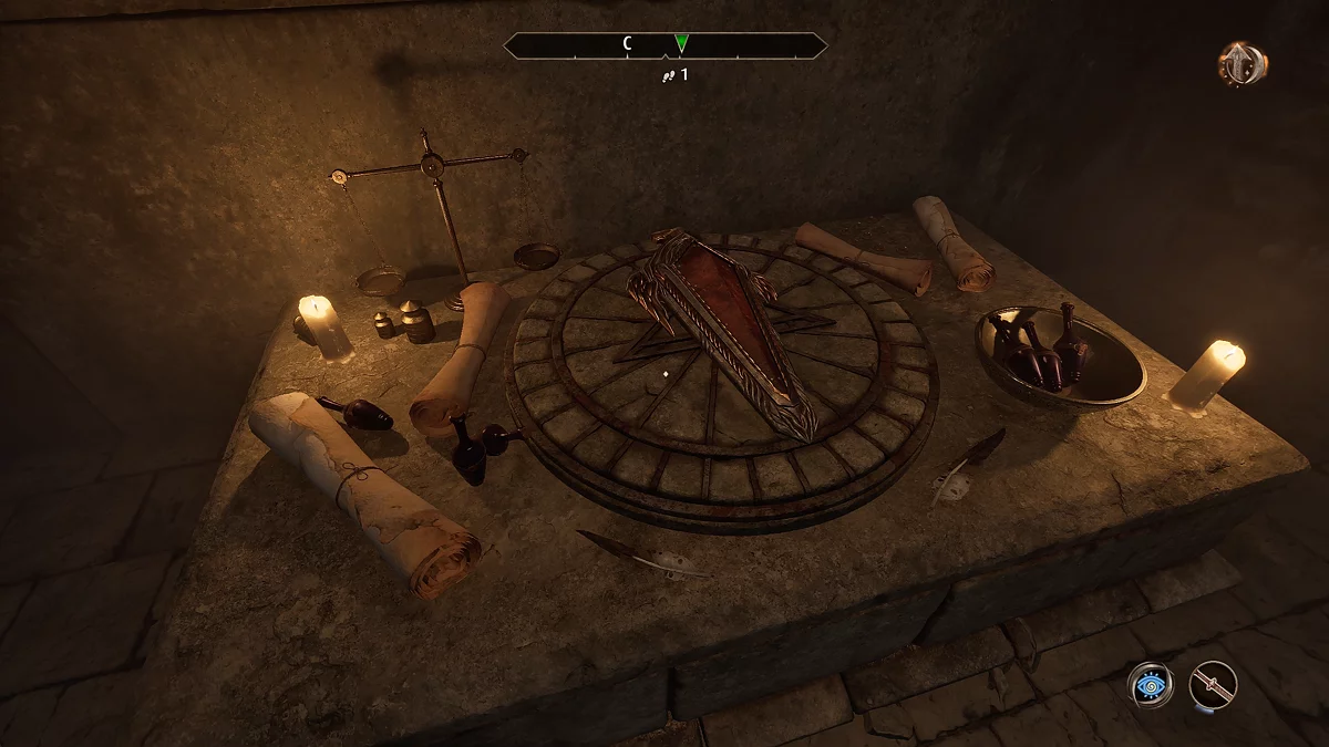 Після вирішення цієї головоломки відкриються ворота, і ви зможете потрапити в останню кімнату. Де на столі поряд з корисними ресурсами лежить щит крестоносця (Shield of the Crusader).