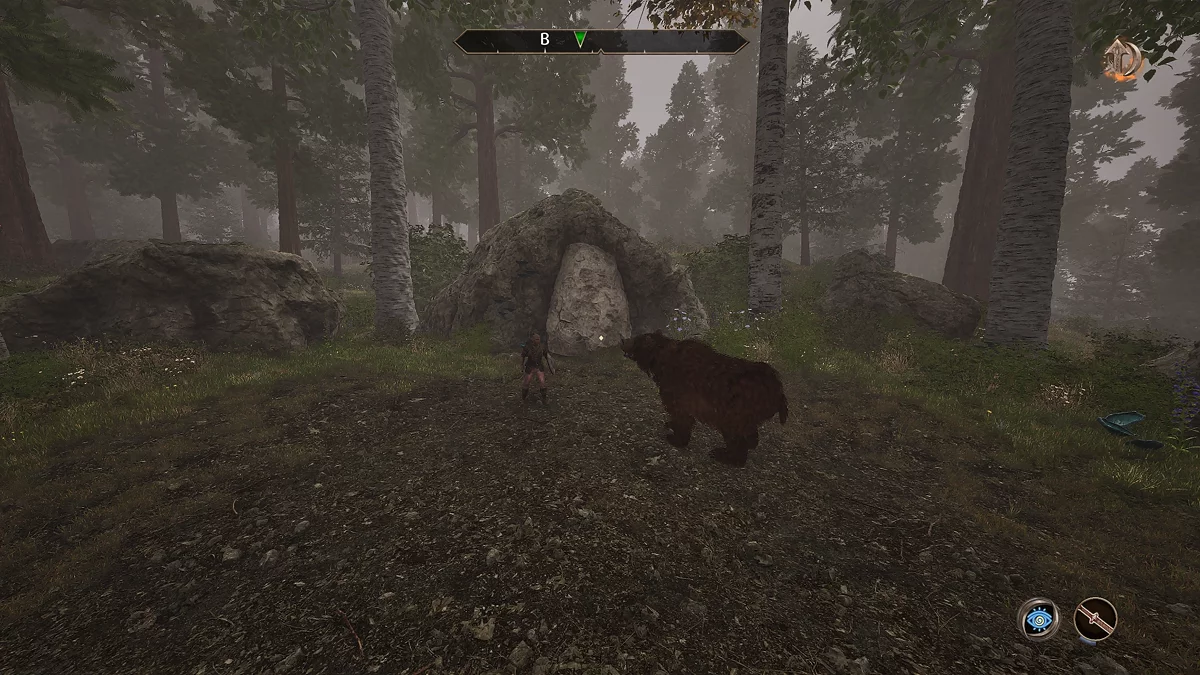 Ідіть до позначки на заході від святині. Підійдіть до великого каменю і чекайте, поки з кущів вийде ведмідь. Не атакуйте тварину, ухиляйтеся і блокуйте його атаки. Після кількох ударів страж піде, і відкриється прохід до артефакту. Зайдіть у грот Кинарет (Kynareth's Grotto) і візьміть черевики крестоносця (Boots of the Crusader).