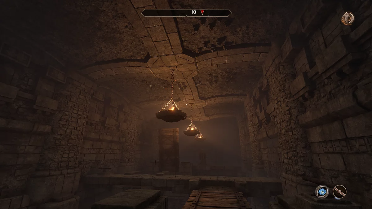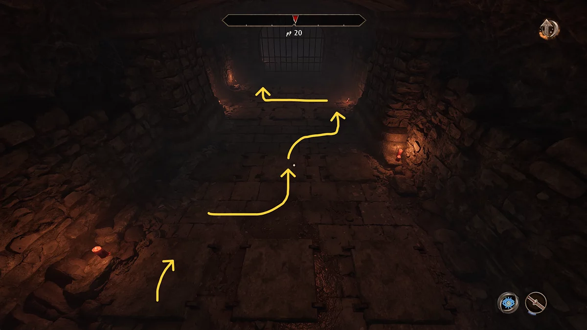 Ви опинитеся в коридорі з плитами. Щоб відкрити ворота, потрібно правильно натиснути на плити, які видають глухий звук.