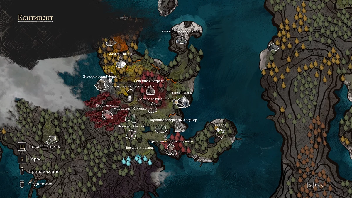 - Розташування: Острів на південно-захід від локації «Острів Багатоликого». Шукайте жестрала за мімами.