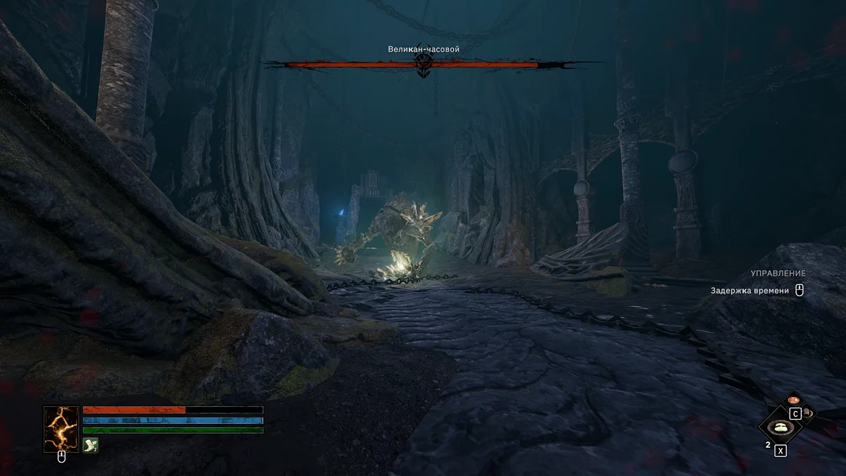 Опинившись у останньому залі, рекомендуємо зберегти гру, оскільки попереду чекає сюжетний бос — «Великан-годинникар», який з'явиться з-під землі, коли герой опиниться приблизно в центрі приміщення.