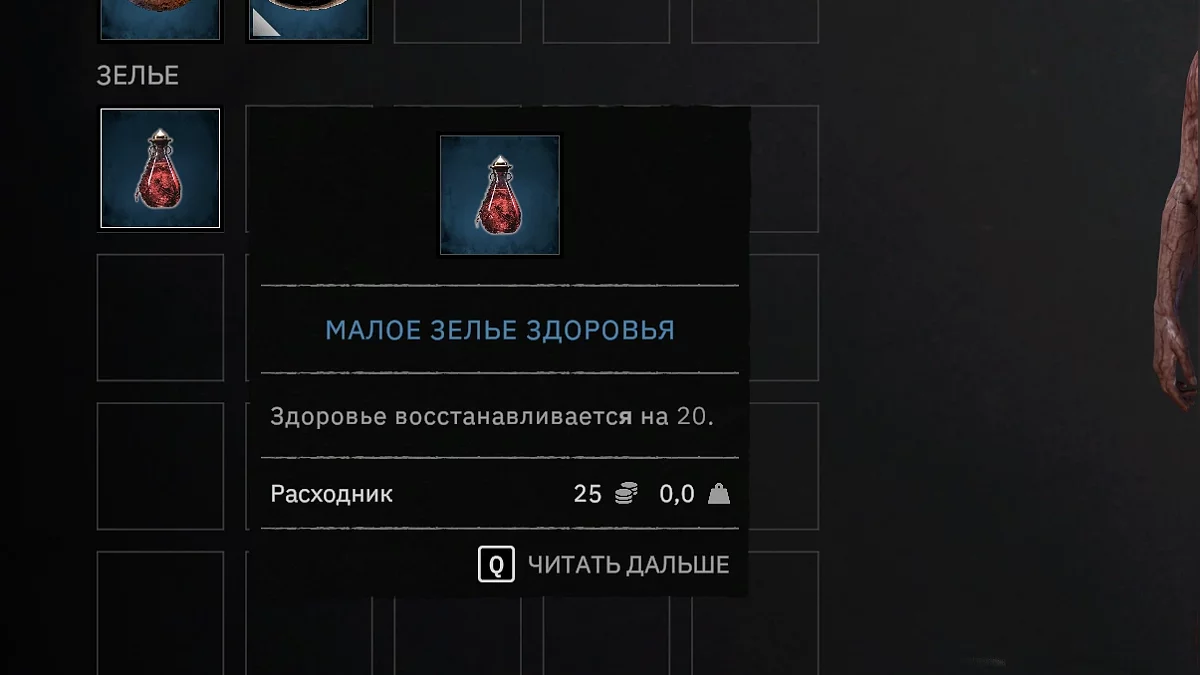 У протилежній камері знайдіть за ліжком «Мале зілля здоров'я». Зілля – алхімічні препарати, як правило, миттєво відновлюють характеристики героя, а також можуть тимчасово підвищувати їх або впливати на атрибути та інші параметри.