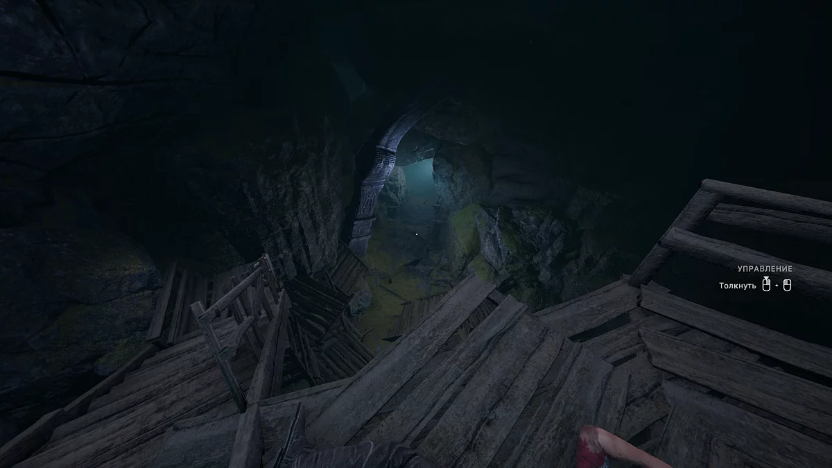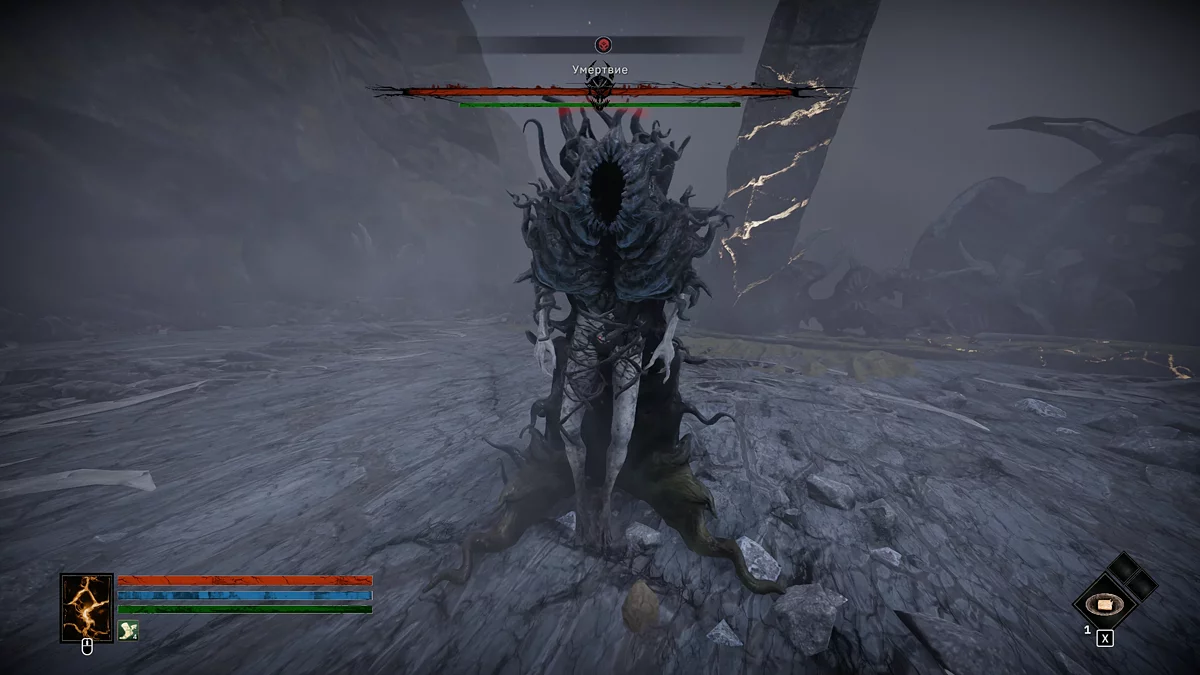 В кінці печери вбийте останнього монстра і за допомогою жовтого сгустка в руках гігантської статуї покиньте локацію.