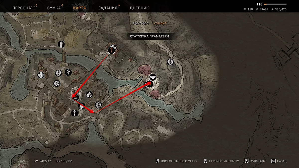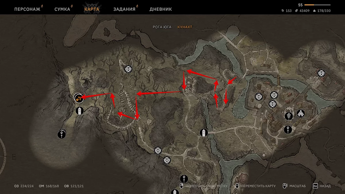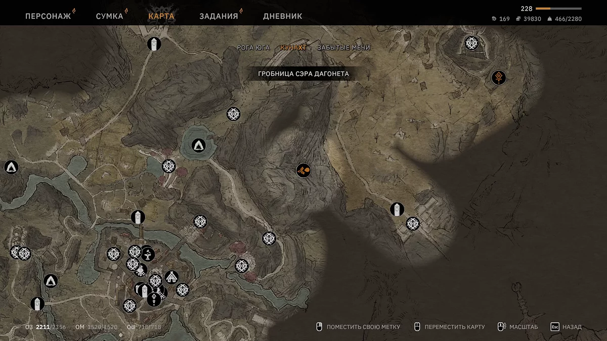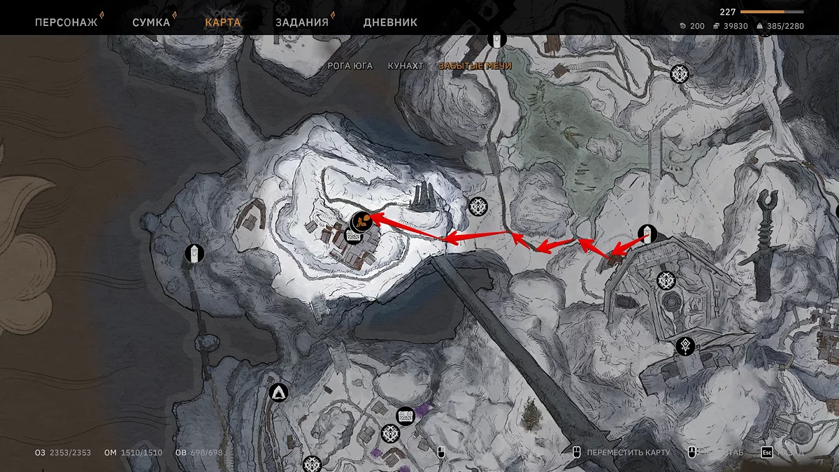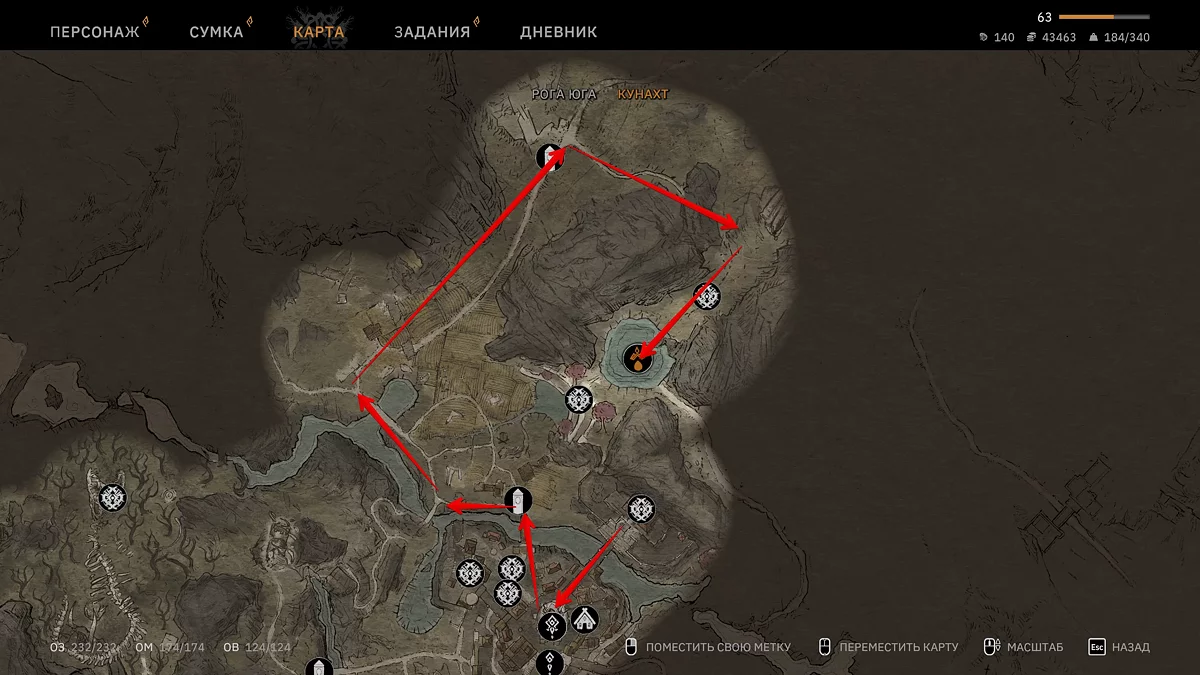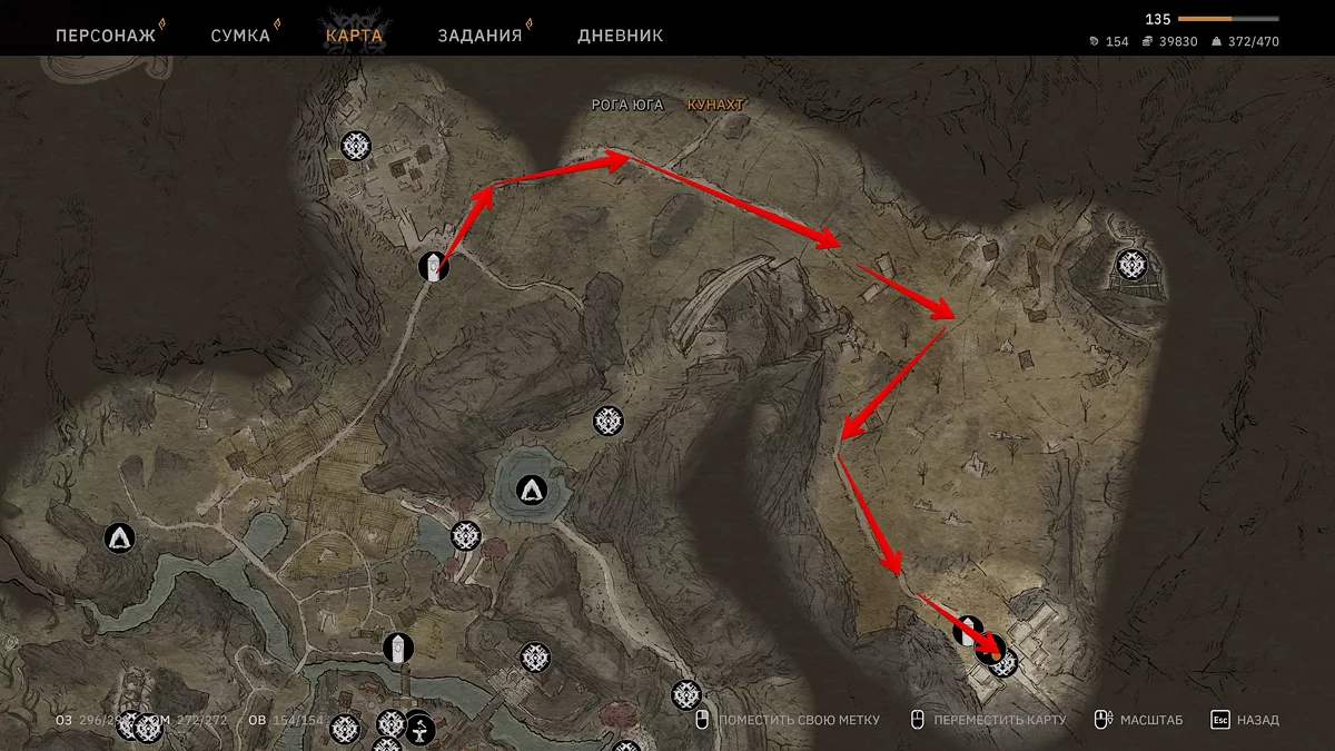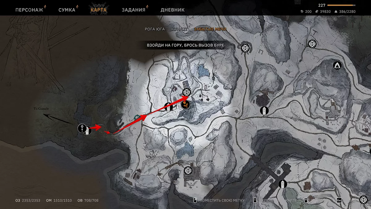 Відправляйтеся в Кунахт через північні ворота. Слідуйте дорогою прямо, нікуди не звертаючи. Пройдіть через хмару мари до плетеного чоловіка, стрибніть вниз, поверніть направо і увійдіть у печеру, де потрібно активувати символи: Екскалібур, щит Паламеда, корона Артура. Потім відкриється портал, що є точкою неповернення.